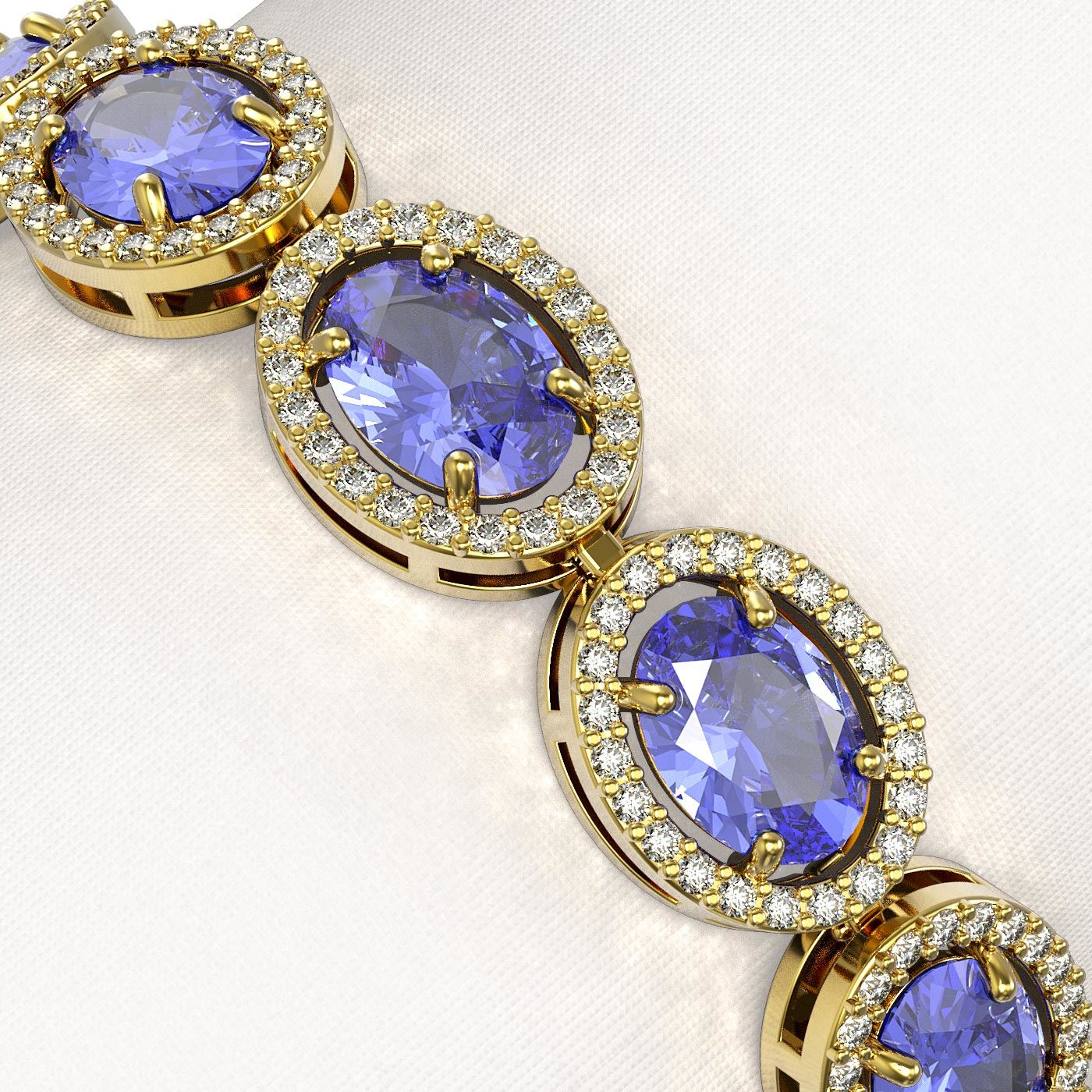 40612 - REF-353M6F ---- 21.35 CTW Tanzanite & Diamond Bracelet Yellow Gold 10K Yellow Gold ---- Luxury Designer Brand Bracelet Appraised at $23,350 Certificate Number US40612 10k Yellow gold, Bracelet Size is 7 Inches, Bracelet measuring approx. 9 mm x 7 Inches, weighing in total approx. 14 grams. Made in the USA and is stamped 10k, Main stone 18.2721951219512 carat total weight containing 17 pieces of Intense Violet Blue color with AAA quality Oval shape cut Tanzanite , Stone #2 3.08 carat total weight containing 374 pieces of G-H color with VS/SI quality Round shape cut Diamond