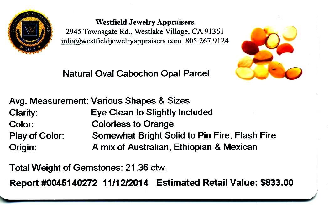 21.36ctw. Natural Oval Cabochon Opal Parcel. Westfield Appraised at $833.00.