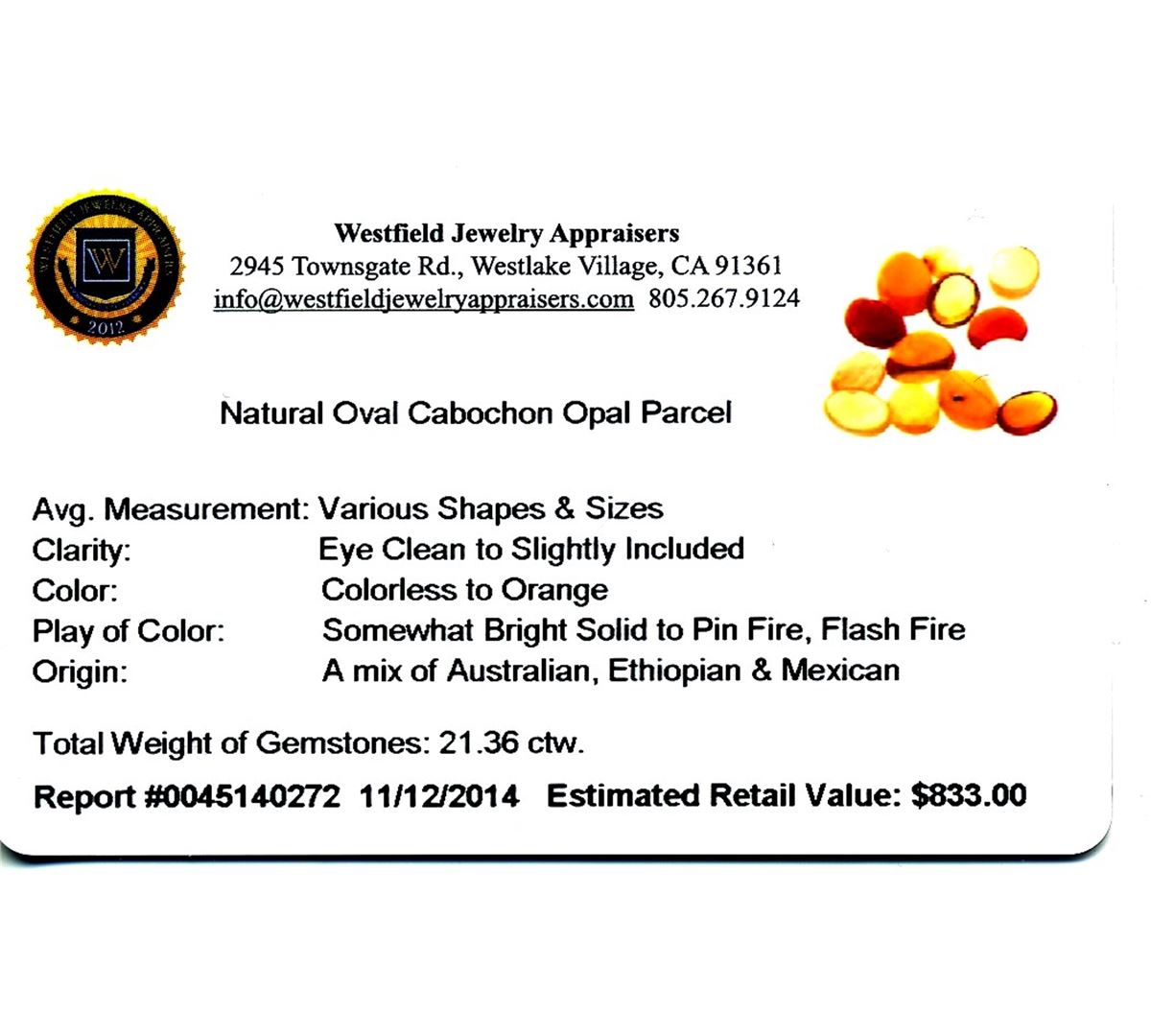 21.36ctw. Natural Oval Cabochon Opal Parcel. Westfield Appraised at $833.00.
