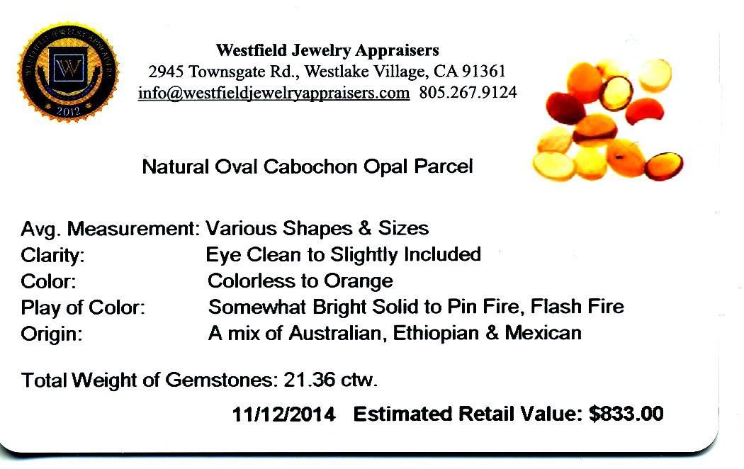 21.36ctw. Natural Oval Cabochon Opal Parcel. Westfield Appraised at $833.00.