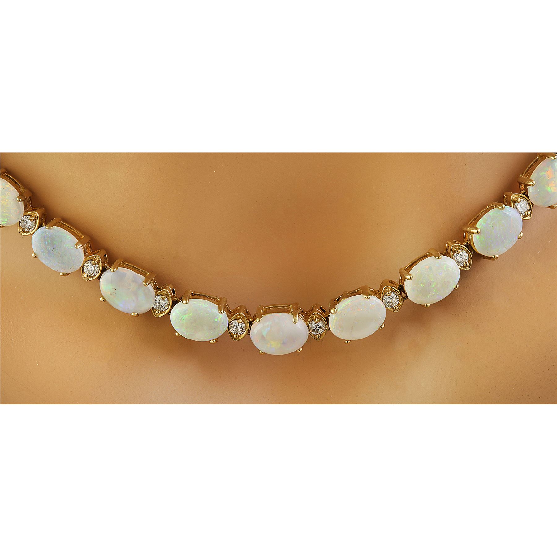 21.40 CTW Opal 18K Yellow Gold Diamond Necklace