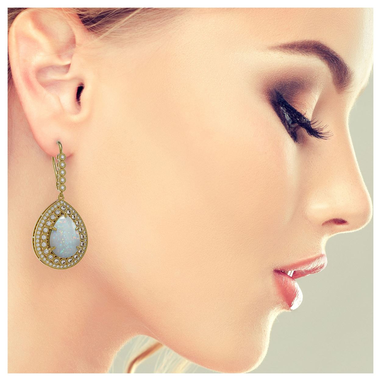 21.54 ctw Opal & Diamond Earrings 14K Yellow Gold