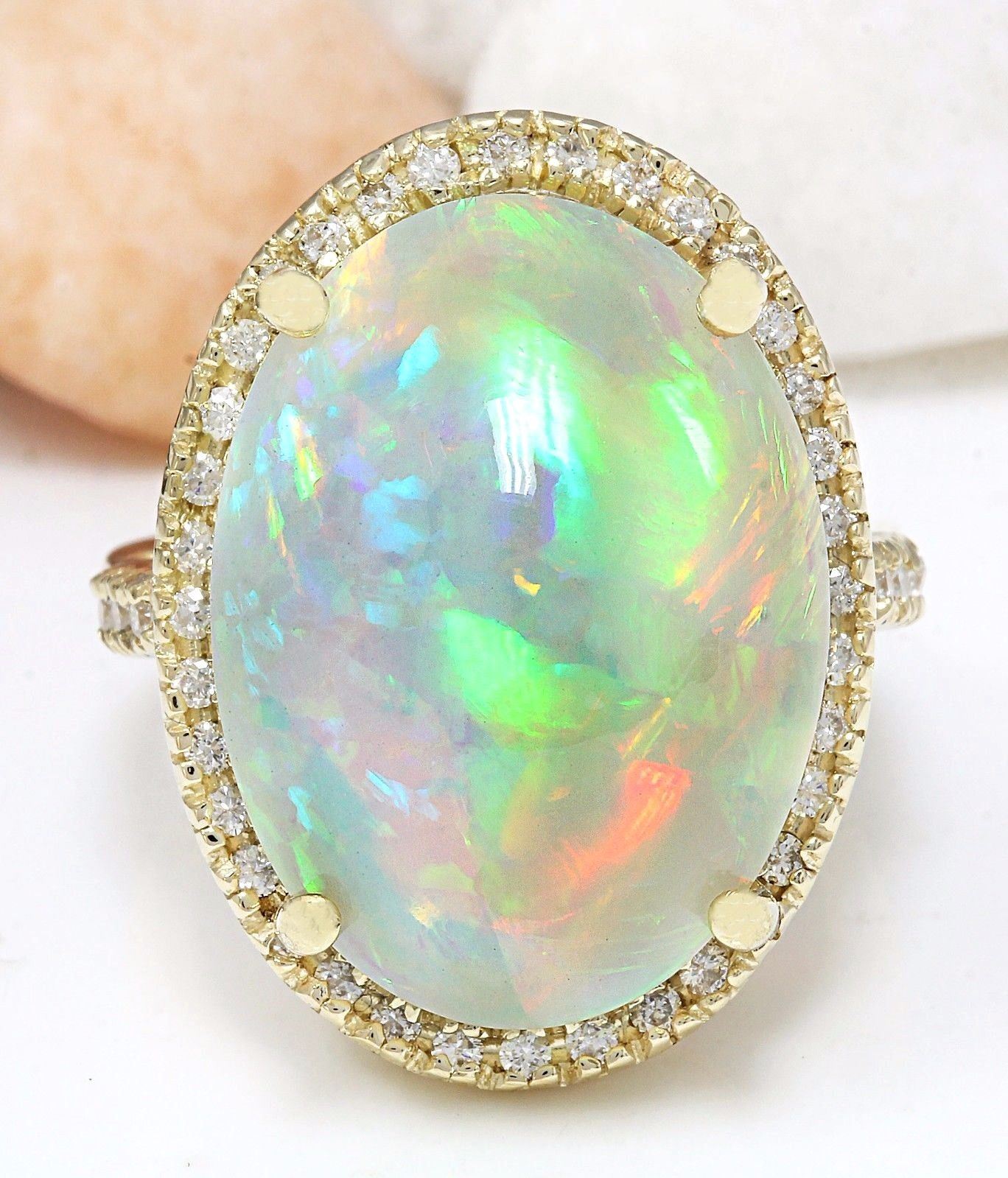 21.58 Carat Natural Opal 14K Solid Yellow Gold Diamond Ring