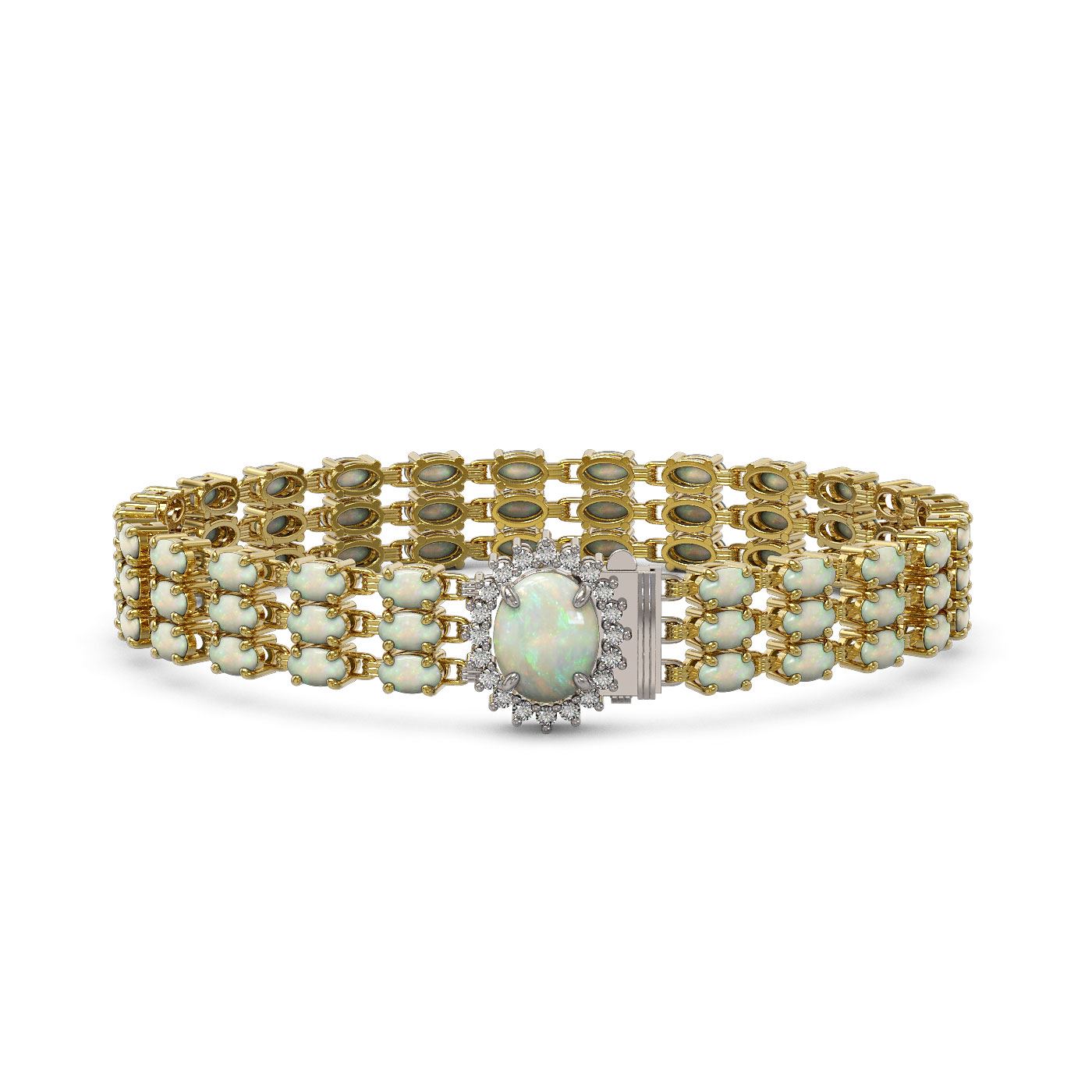 21.59 ctw Opal & Diamond Bracelet 14K Yellow Gold