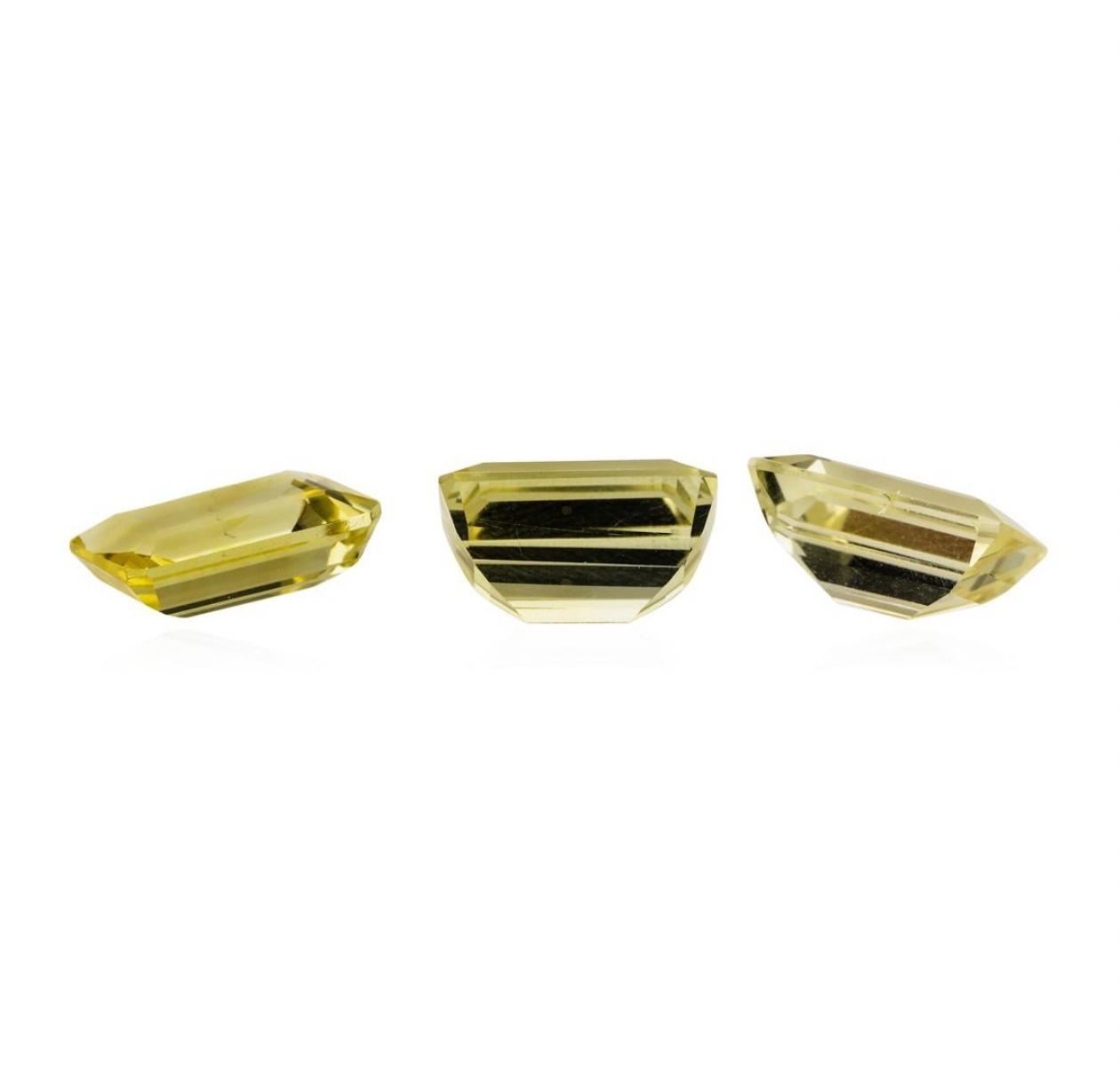 One natural emerald cut citrine quartz parcel of three with an exact weight of 21.68ctw., clarity is eye clean, slightly orangy yellow, medium light to light. Gemological Appraisals Services estimates the retail value at $650.4 GAS Appraised.