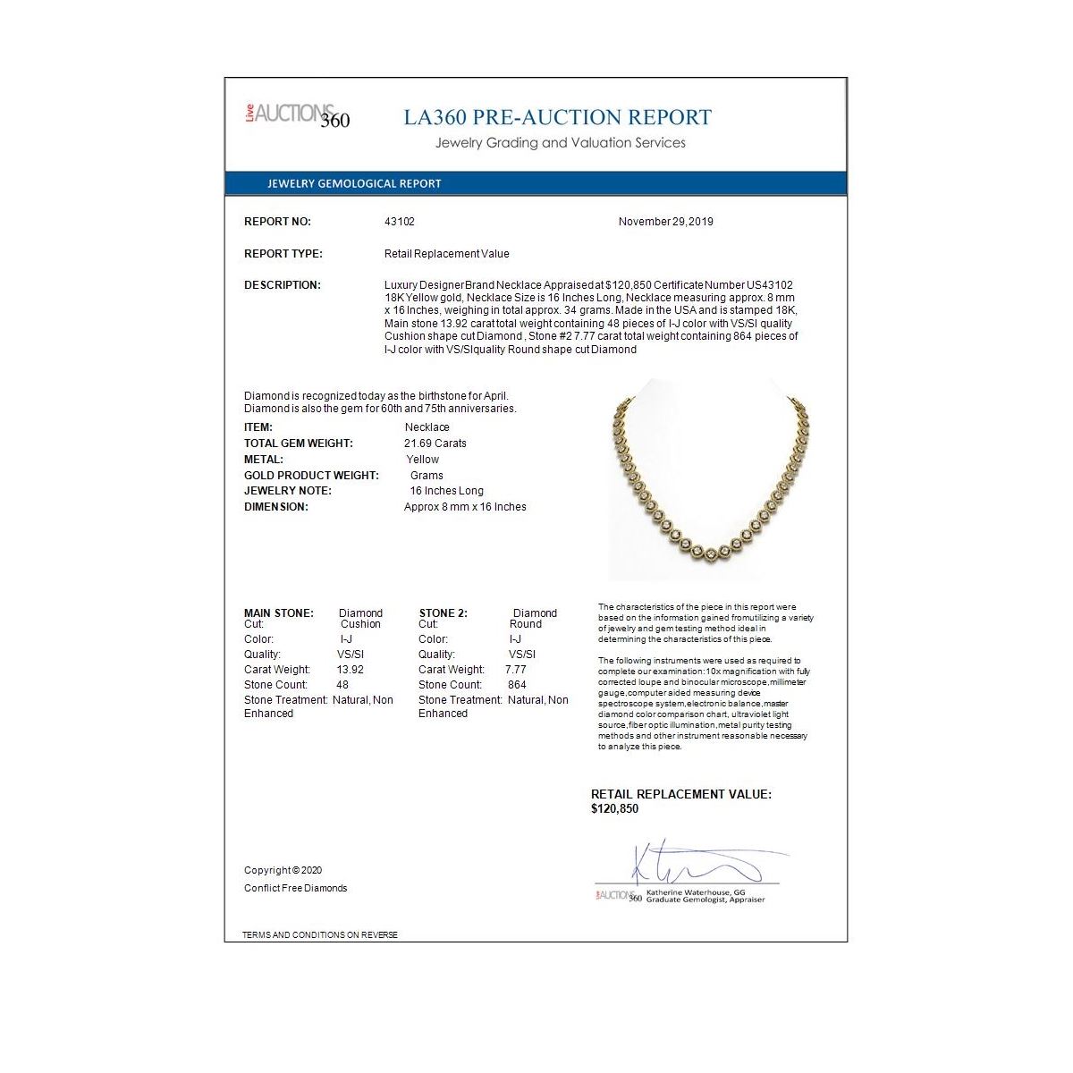 REF-1831K4Y - SKU: 43102 ---- 21.69 ctw Cushion Cut Diamond Micro Pave Necklace 18K Yellow Gold