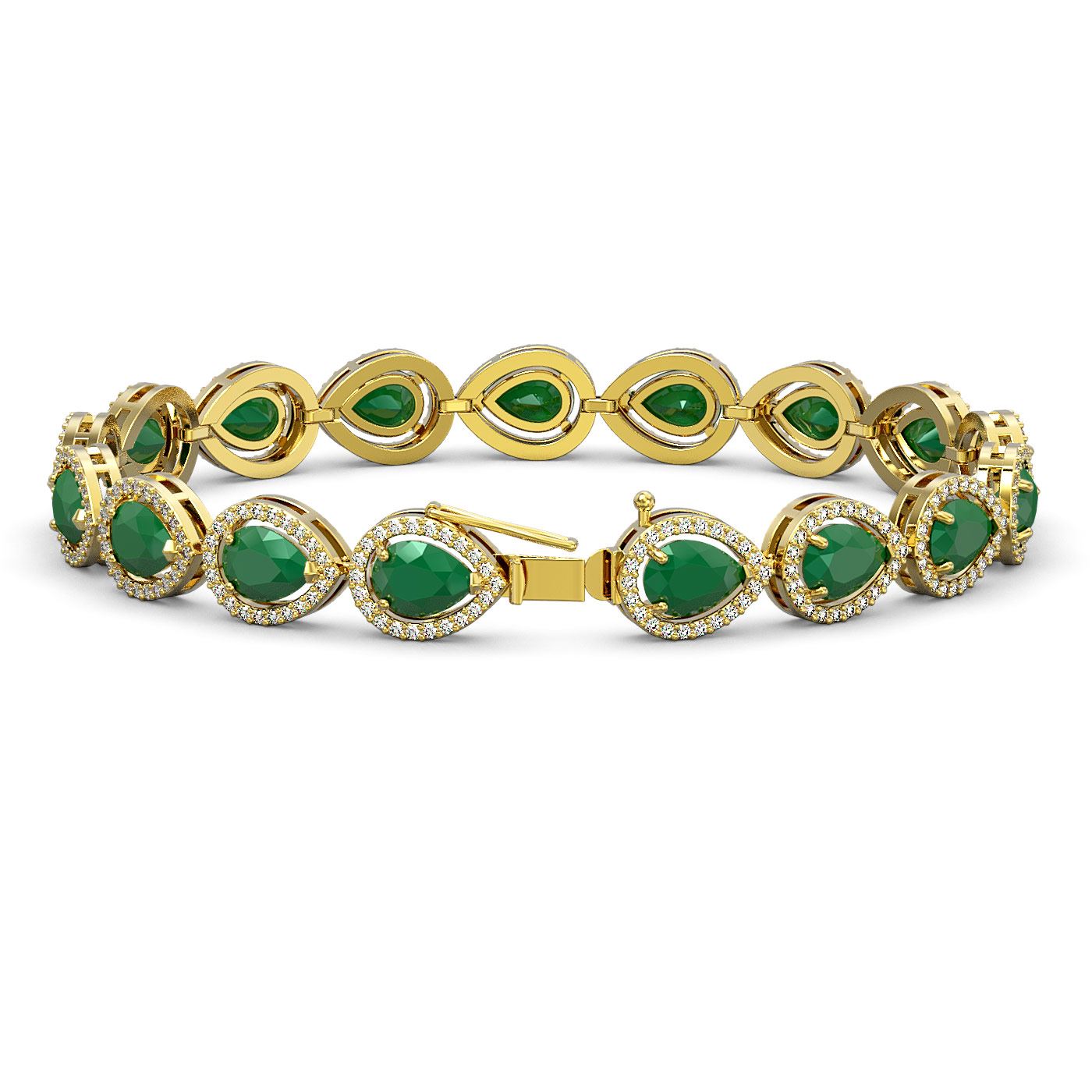 SKU: 41092 ---- 21.69 ctw Emerald & Diamond Micro Pave Halo Bracelet 10k Yellow Gold
