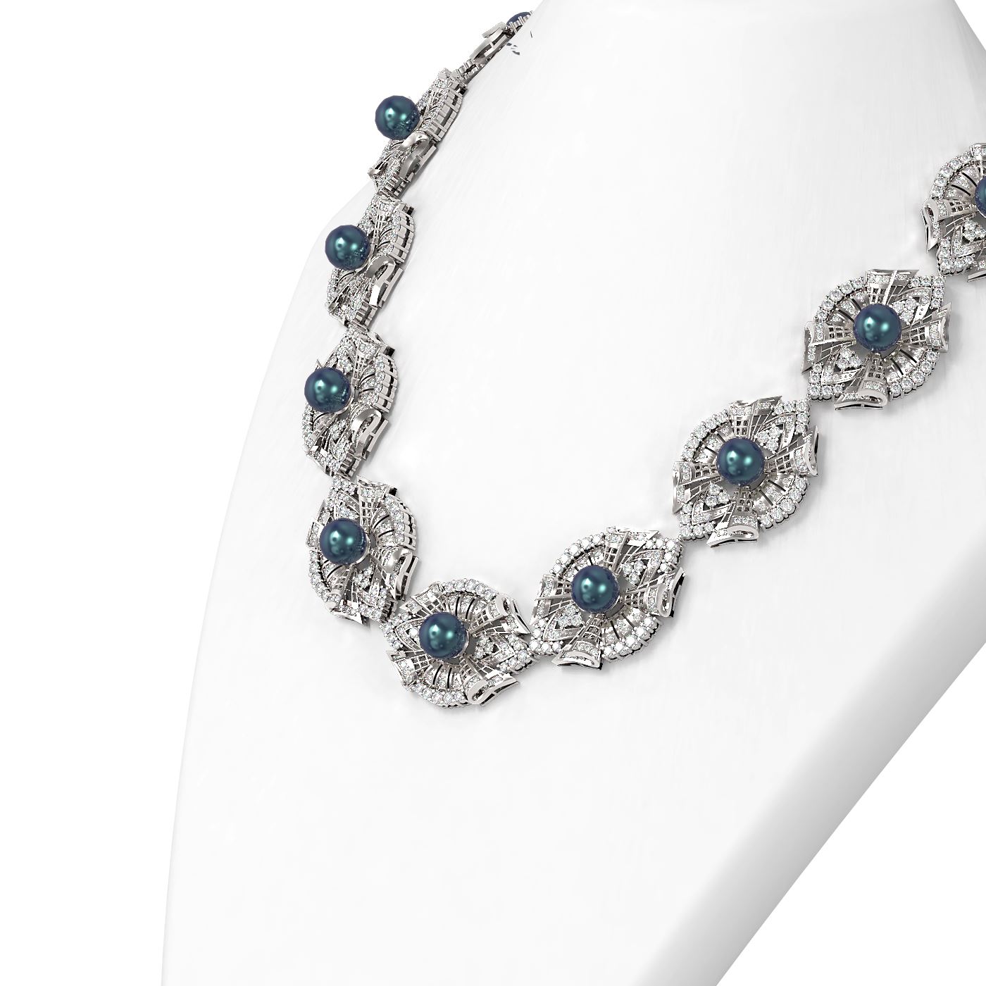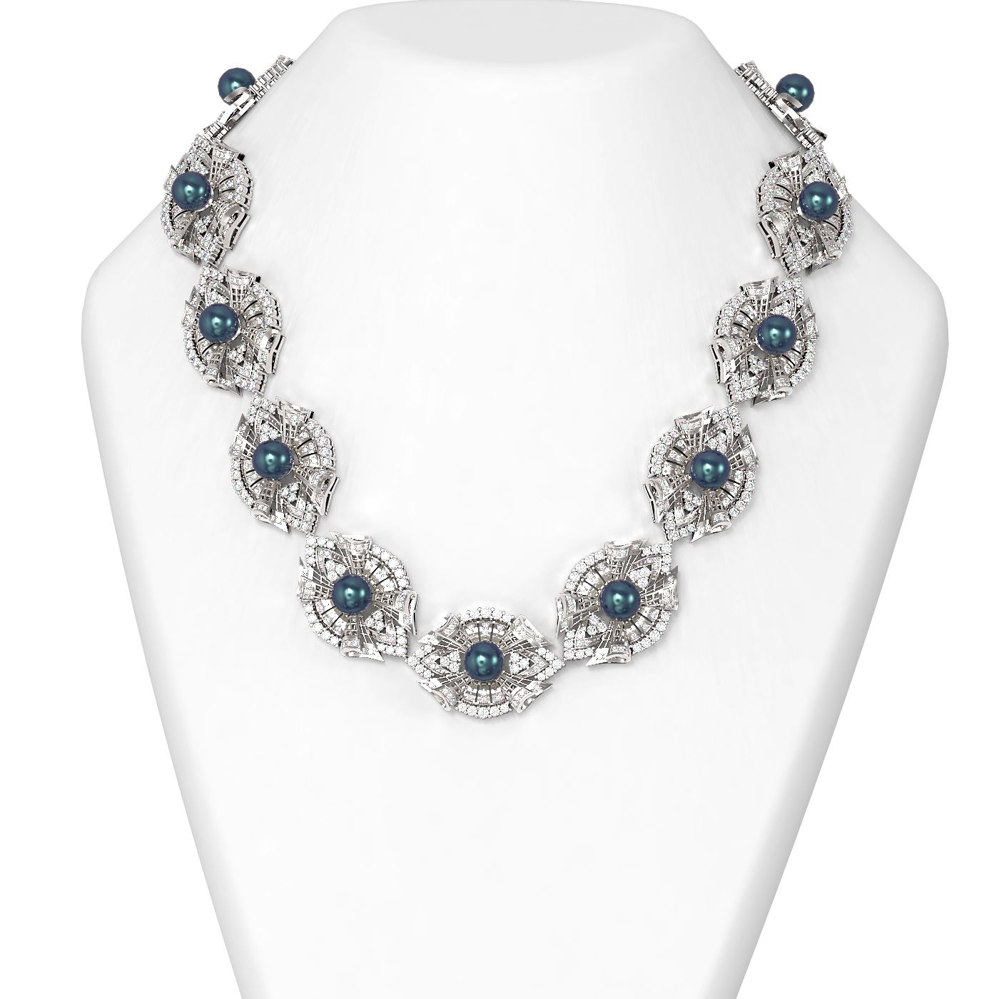 21.78 ctw Diamond and Pearl Necklace 18K White Gold