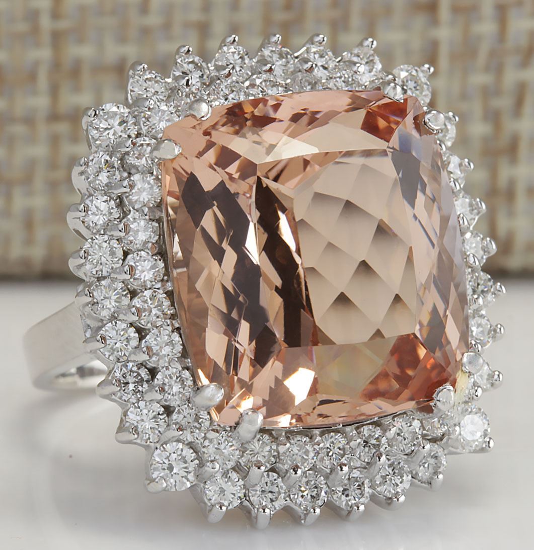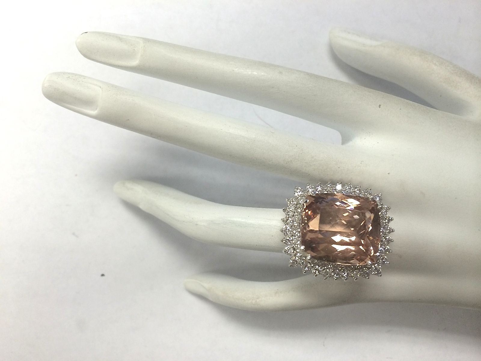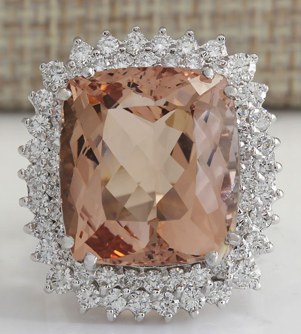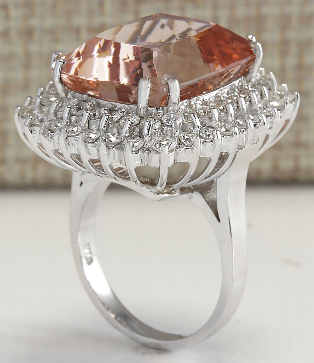 21.86 CTW Natural Peach Morganite And Diamond Ring In 18K Solid White Gold