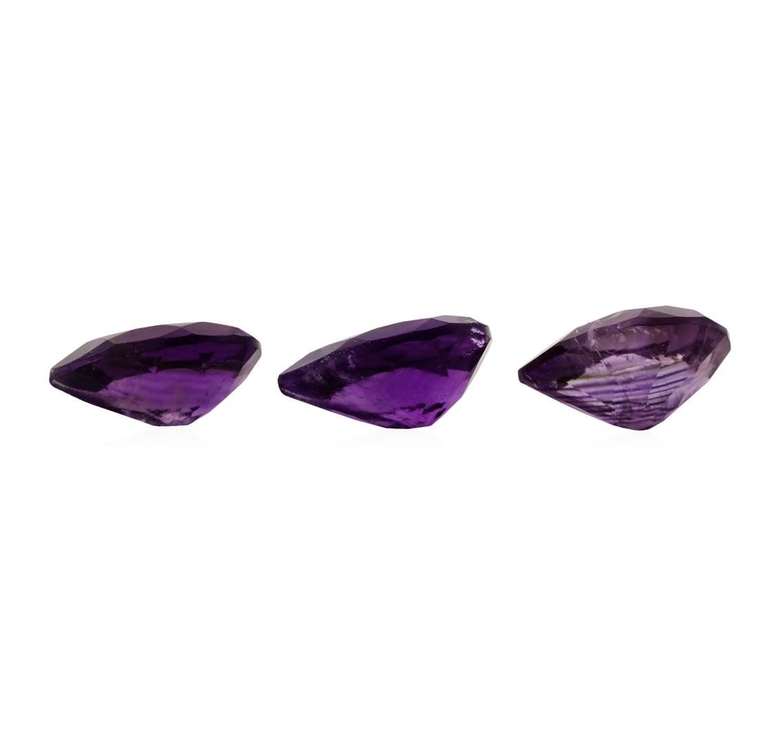 One natural pear cut amethyst parcel of three with an exact weight of 21.86ctw., clarity is moderately included, purple, medium to medium light. Gemological Appraisals Services estimates the retail value at $655.8 GAS Appraised.