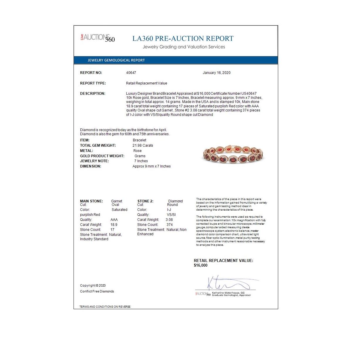 REF-290K9Y - SKU: 40647 ---- 21.98 ctw Garnet & Diamond Micro Pave Halo Bracelet 10k Rose Gold