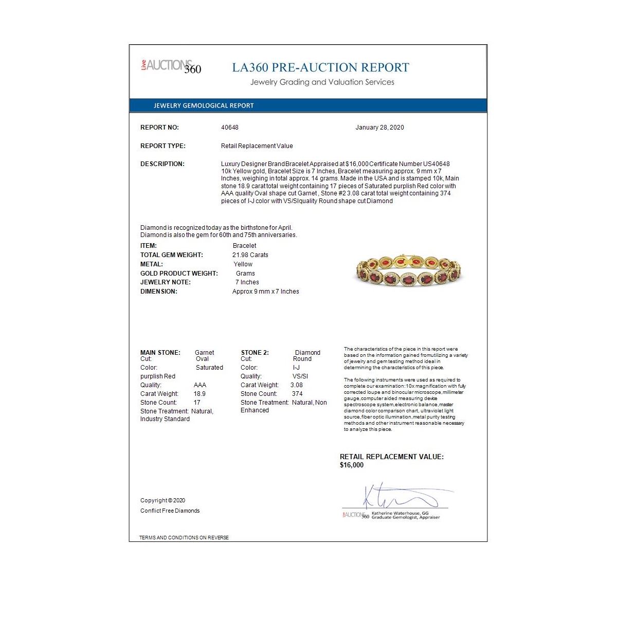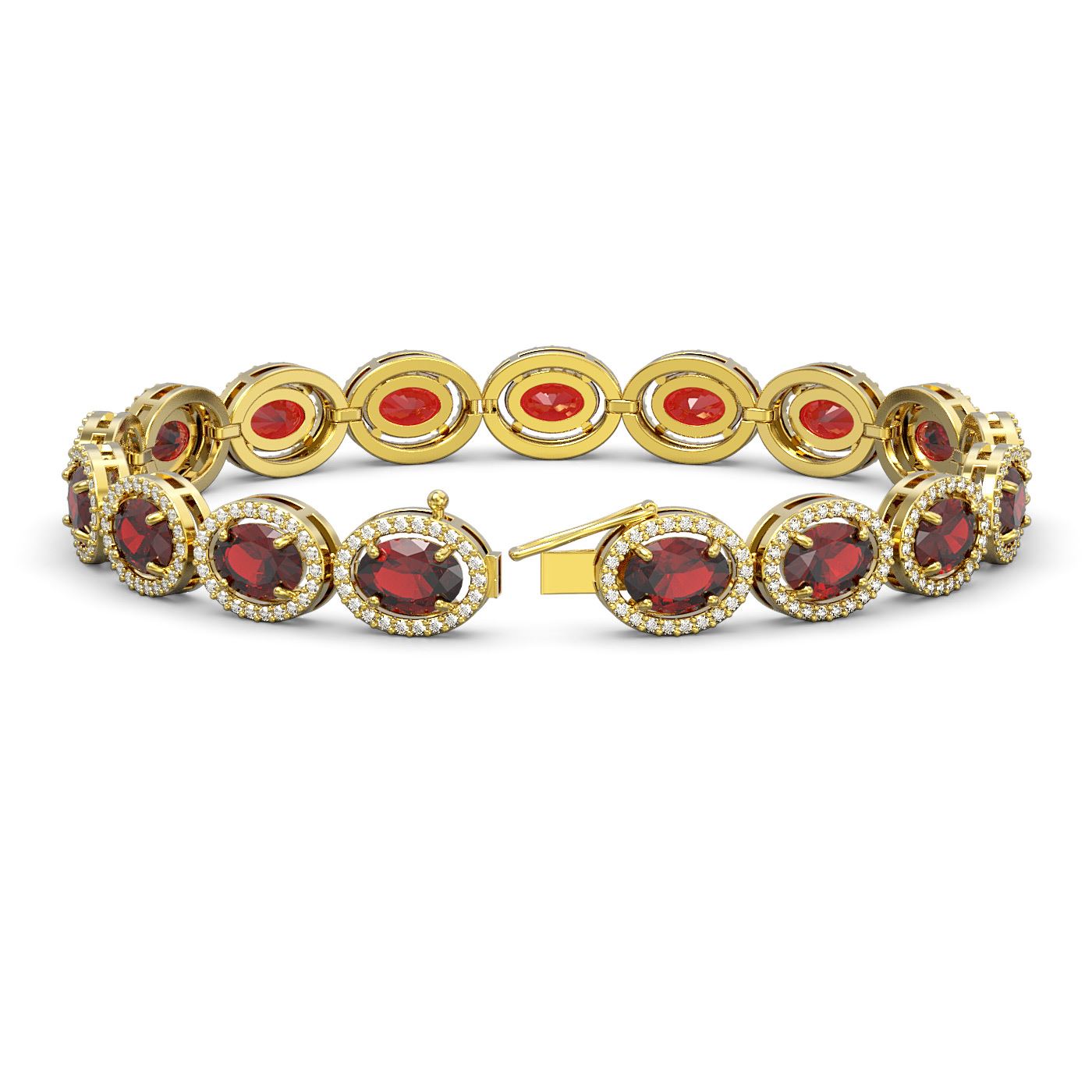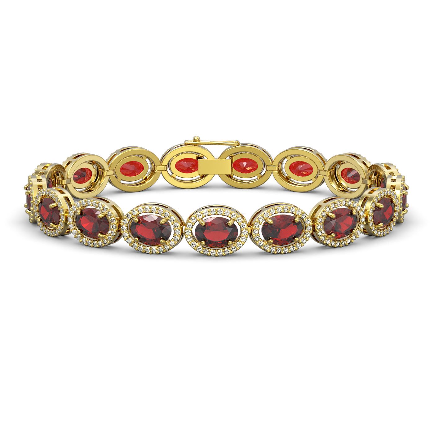 REF-290X9A - SKU: 40648 ---- 21.98 ctw Garnet & Diamond Micro Pave Halo Bracelet 10k Yellow Gold