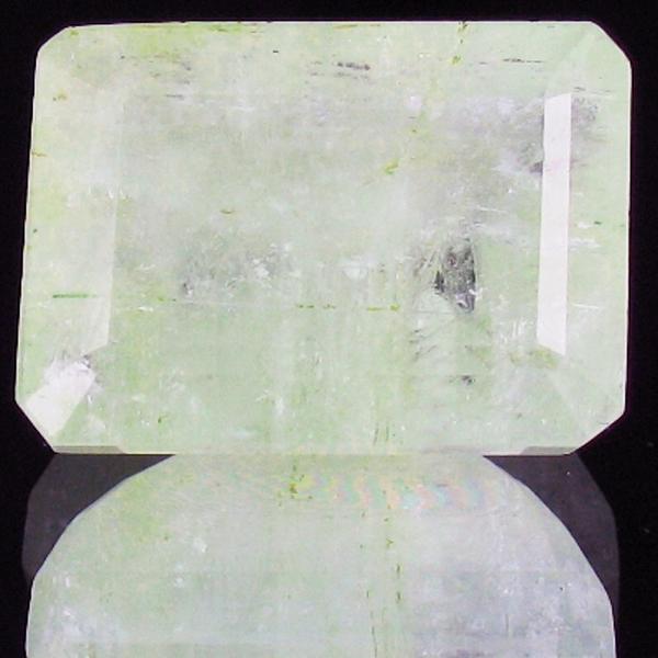 Excellent light green colored specimen emerald cut; lab quality evaluation 5; treatment as noted; Gem Guide wholesale $2190-$3833; full retail appraisal $12593; full lab evaluation available