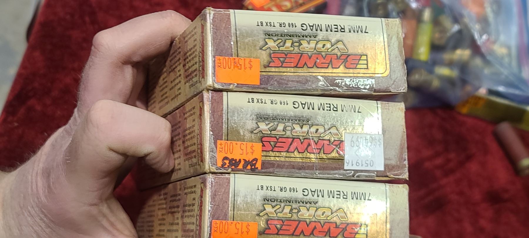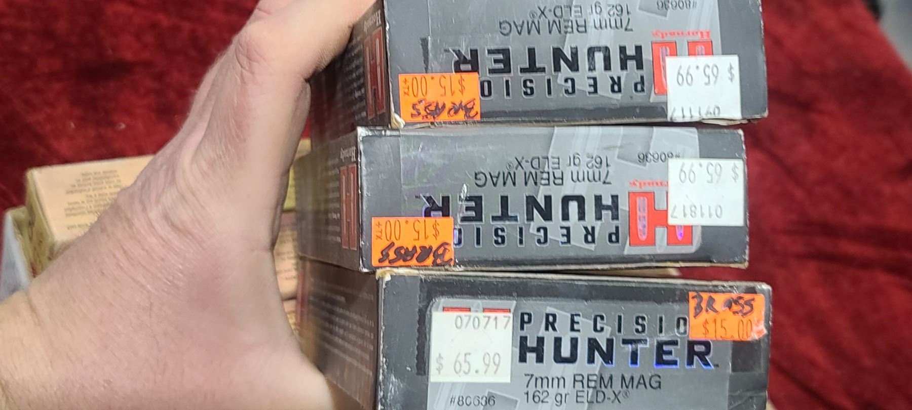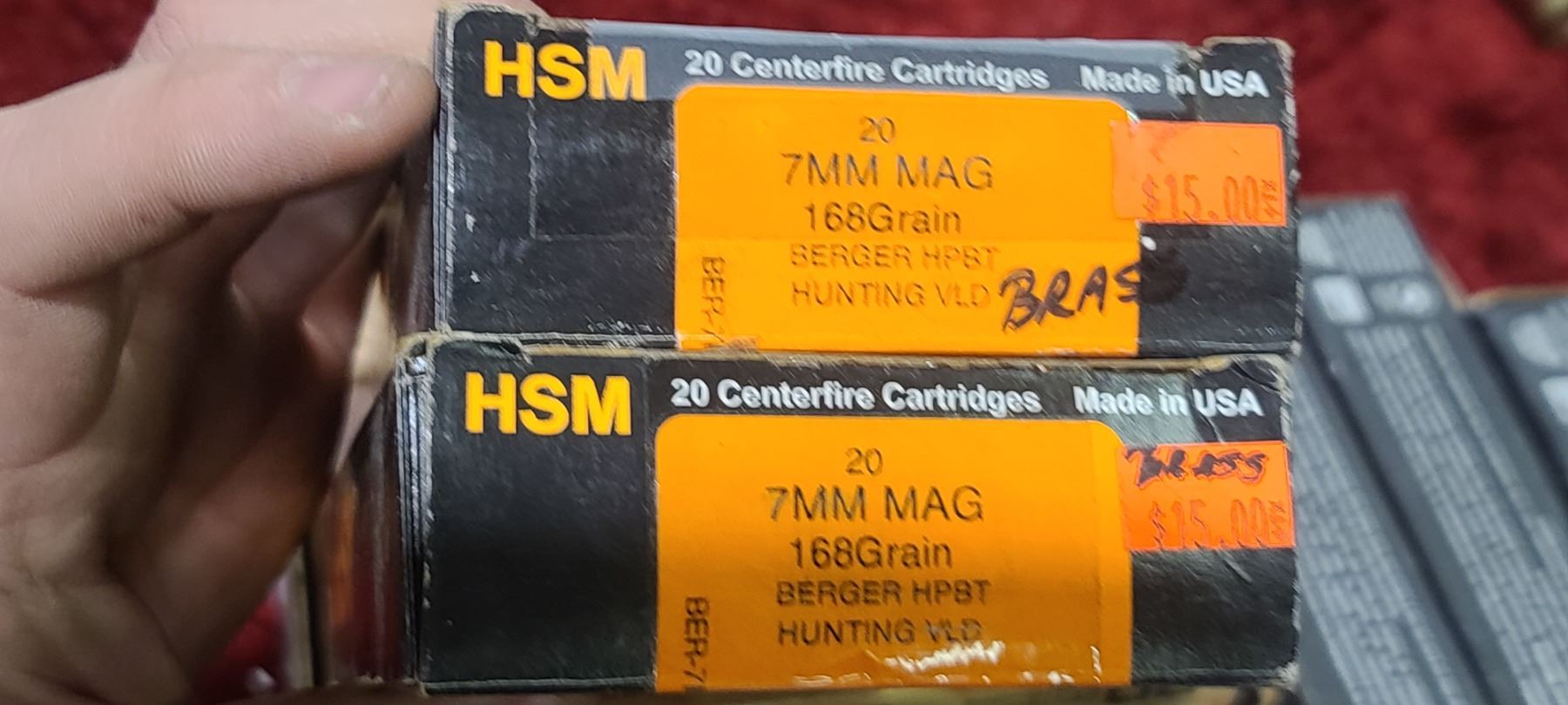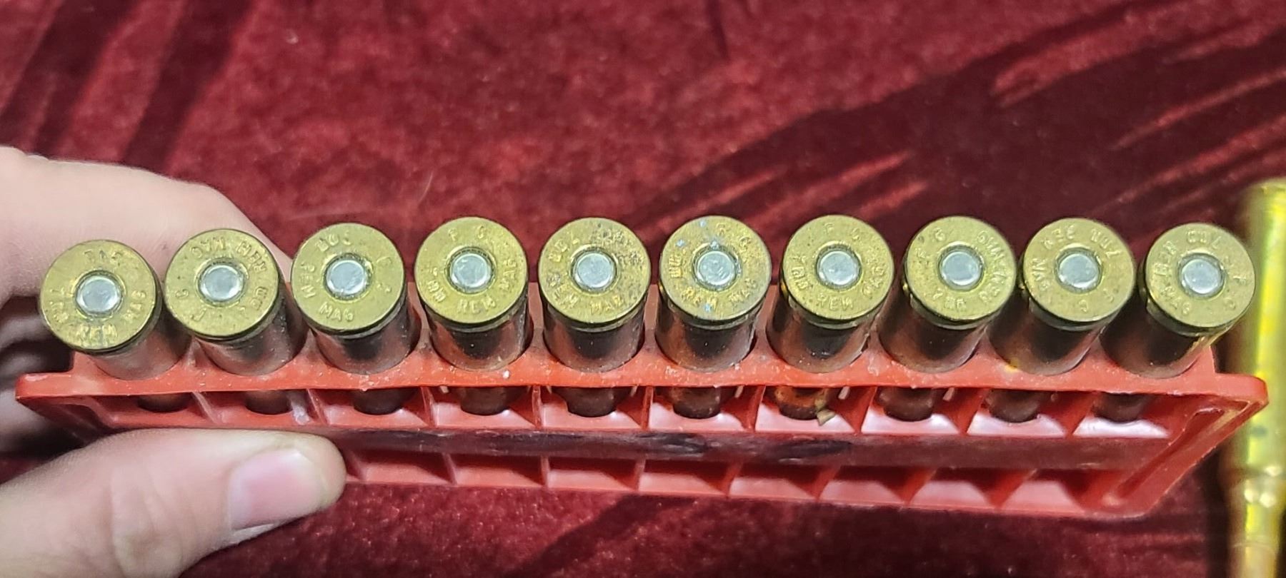 21 ASSORTED ROUNDS OF 7MM REM MAG AND 100 BRASS - NO SHIPPING