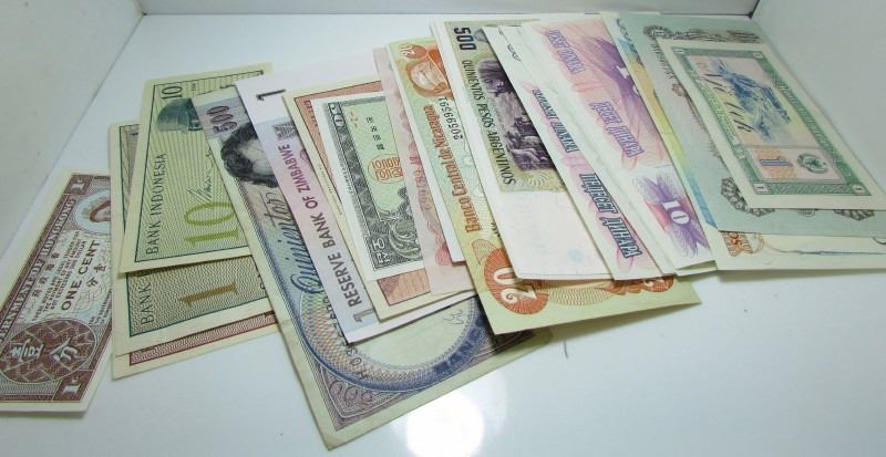 21 Assorted Foreign Bank Notes - All In Mint Condition - Countries Include Biafra, Brazil, Poland, Argentina, Korea, Indonesia, Zimbabwe & More -- Book Value Over $20