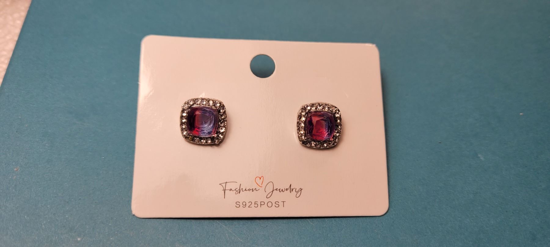 SAPPHIRE COLORED SQUARE CUT STUD CZ EARRING. JEWELLERY