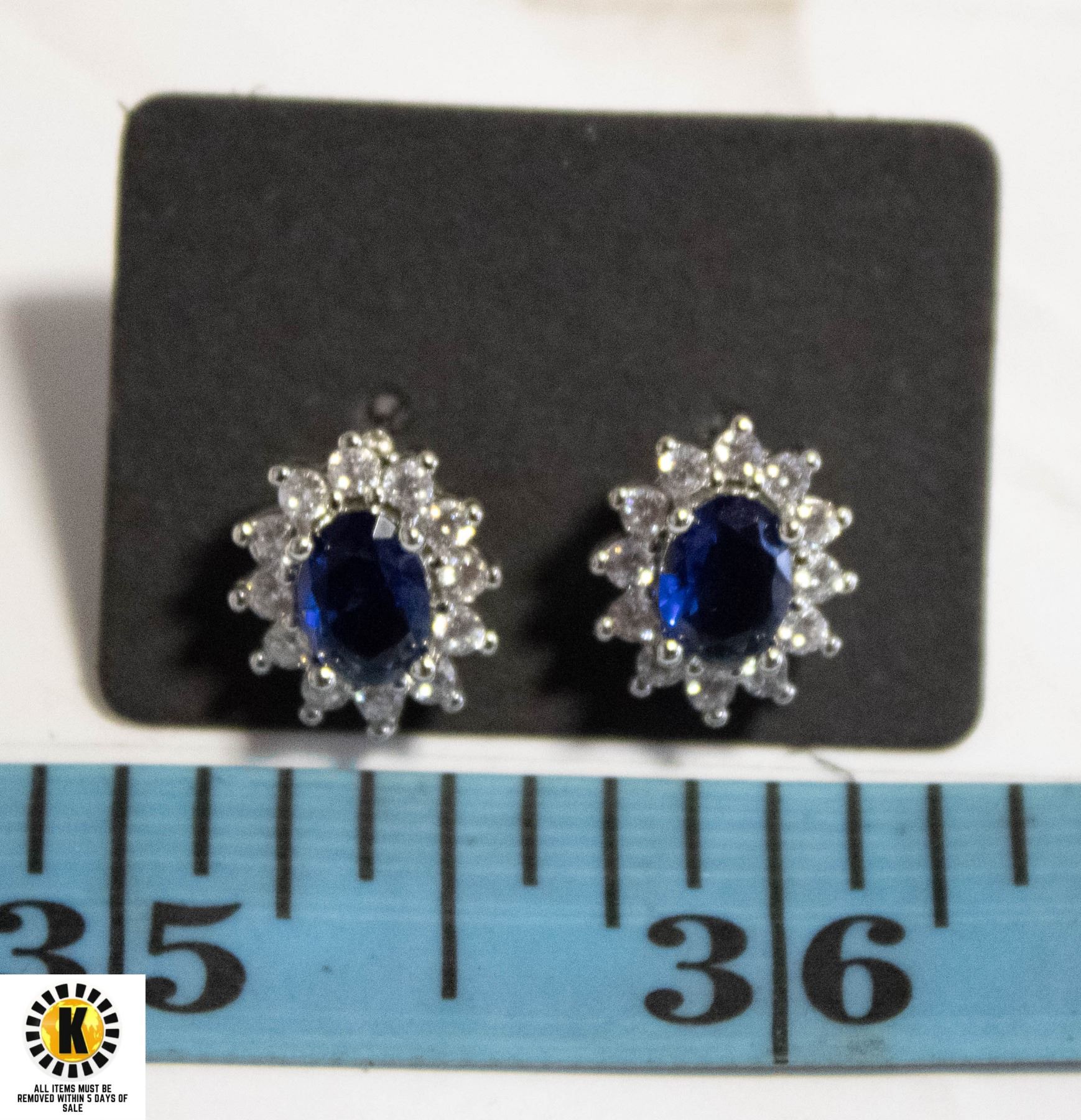 BLUE CUBIC ZIRCONIA SURROUNDED BY CLEAR ACCENTS