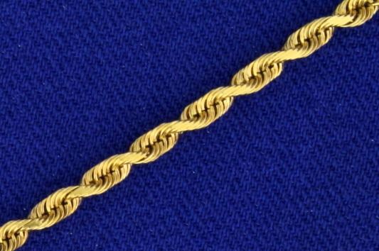 In 14k yellow gold. 2mm thick, with lobster clasp. 5.8g.