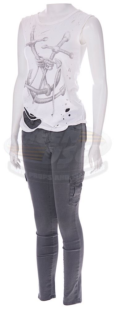 (Columbia Pictures, 2012) This outfit was acquired by the production for use by Dakota Johnson as "Fugazy". The outfit consists of a distressed t-shirt with an anchors graphic on the chest and a pair of cargo pants. Included with the outfit is a production used costume tag that details the entire outfit, change and scene numbers used.