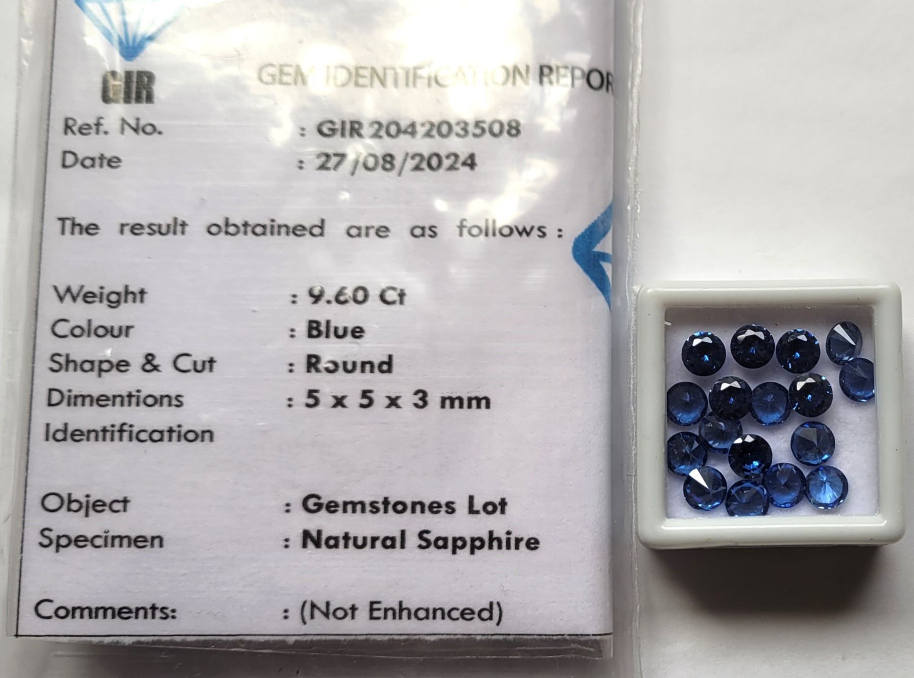 SAPPHIRE GEMSTONES, AND GEMOLOGIST REPORT, TOTAL OF 9.6 CTS, READY FOR SETTING. JEWELERY