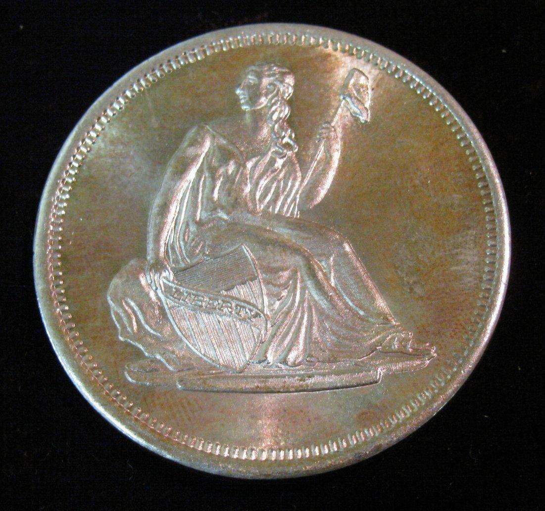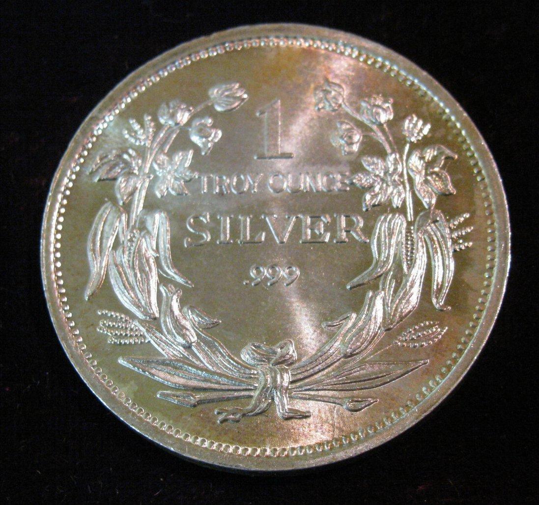 21. Liberty Seated Dollar Design One Troy Ounce .999 Fine Silver. Lightly toned BU.