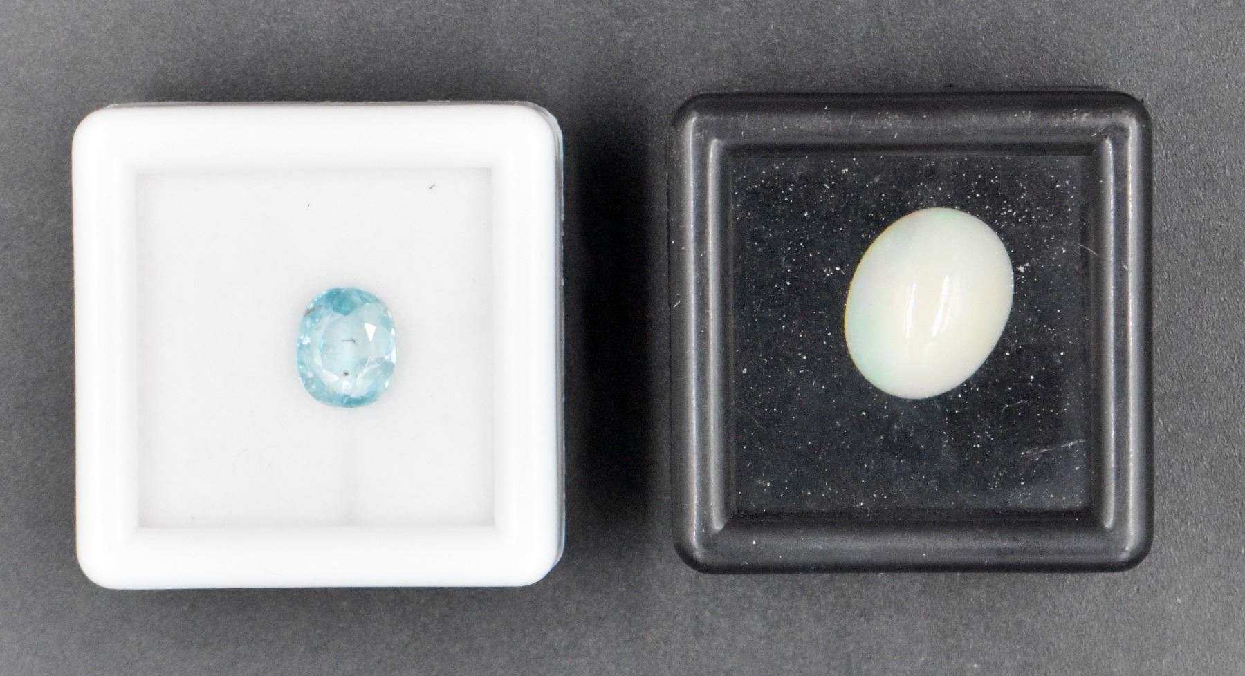 UNHEATED OPAL 10X12.3X5.4MM/CAMBODIA HEATED SEA FORM BLUE ZIRCOM 6.4X7.6X4MM