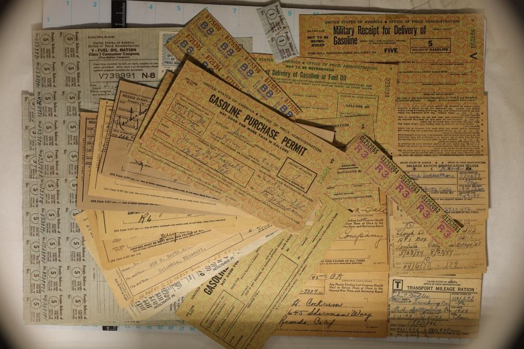 COUPONS, MILEAGE RATIONS AND MILITARY RECEIPT FOR DELIVERY FROM WWII
