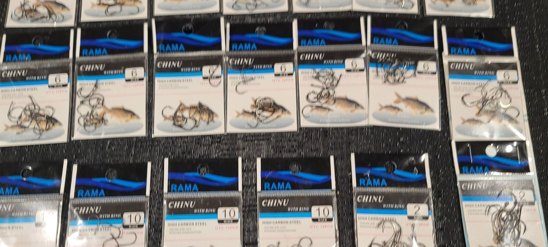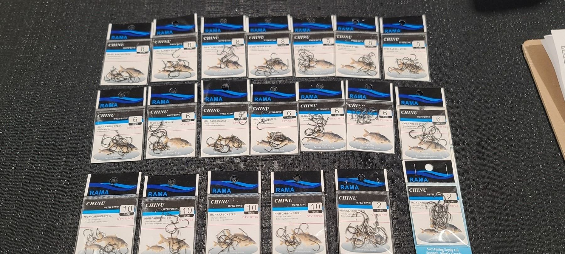 21 PACKS OF RAMA CHINU HIGH CARBON STEEL HOOKS 12 PER PACK SIZE 2, 4, 6, 8