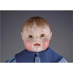21” PHILADELPHIA BABY. A desirable and sought after American cloth doll of the 19th century. This example, although dressed in replacement clothing, still has a tremendous amount of charm and appeal. CONDITION: After inspection by a black light, there has been some touch up to the cheeks. JL 1-2542