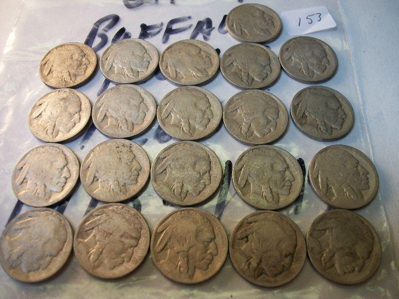 21 PIECE BUFFALO NICKELS 1913-1919 WITH READABLE DATES