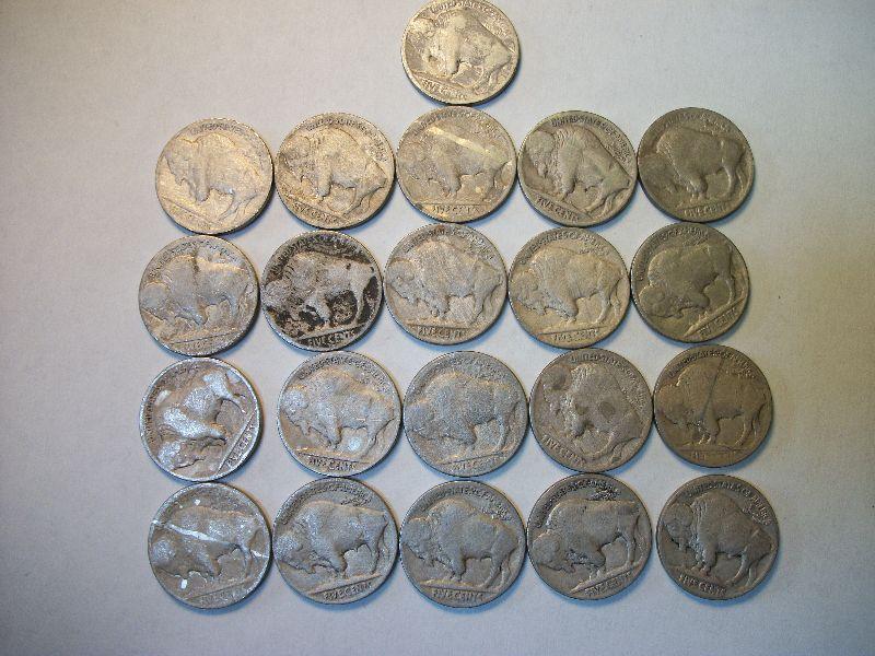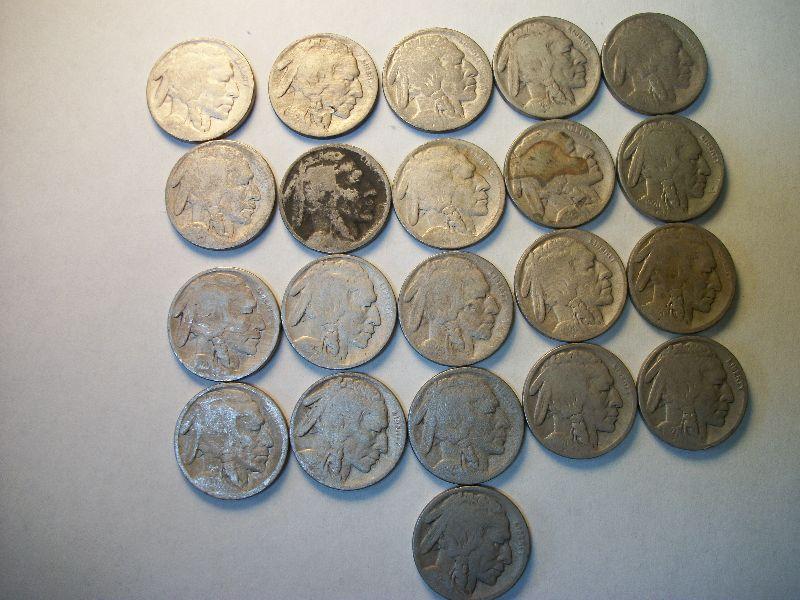 21 PIECE BUFFALO NICKELS 1920-1929 WITH READABLE DATES