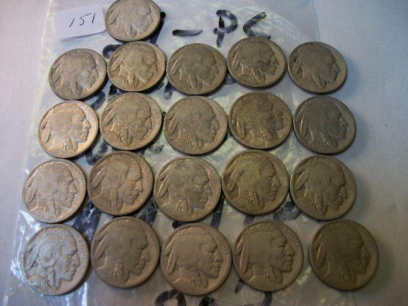 21 PIECE BUFFALO NICKELS 1920-1929 WITH READABLE DATES