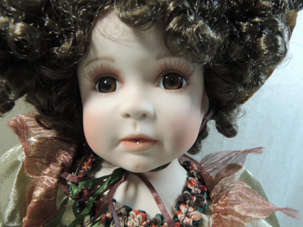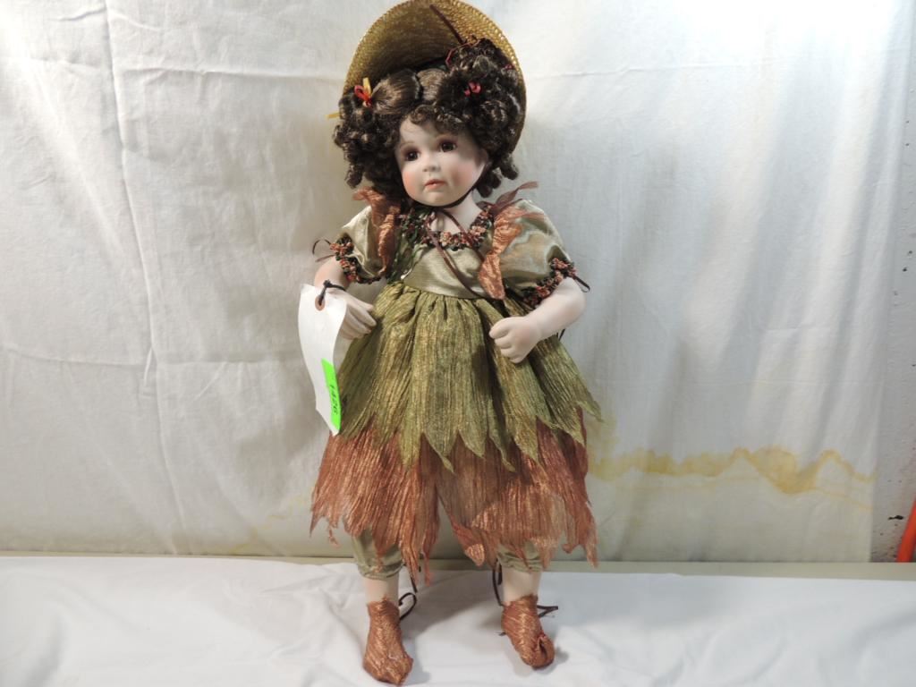 21" PORCELAIN FIARY DOLL BROWN HAIR, BROWN EYES, PORCELAIN DOLL, DECORATIVE, GOOD CONDITION, COLLECTIBLE, DESIGNER DOLL, AS SHOWN SEE PHOTO FOR MORE DETAILS.