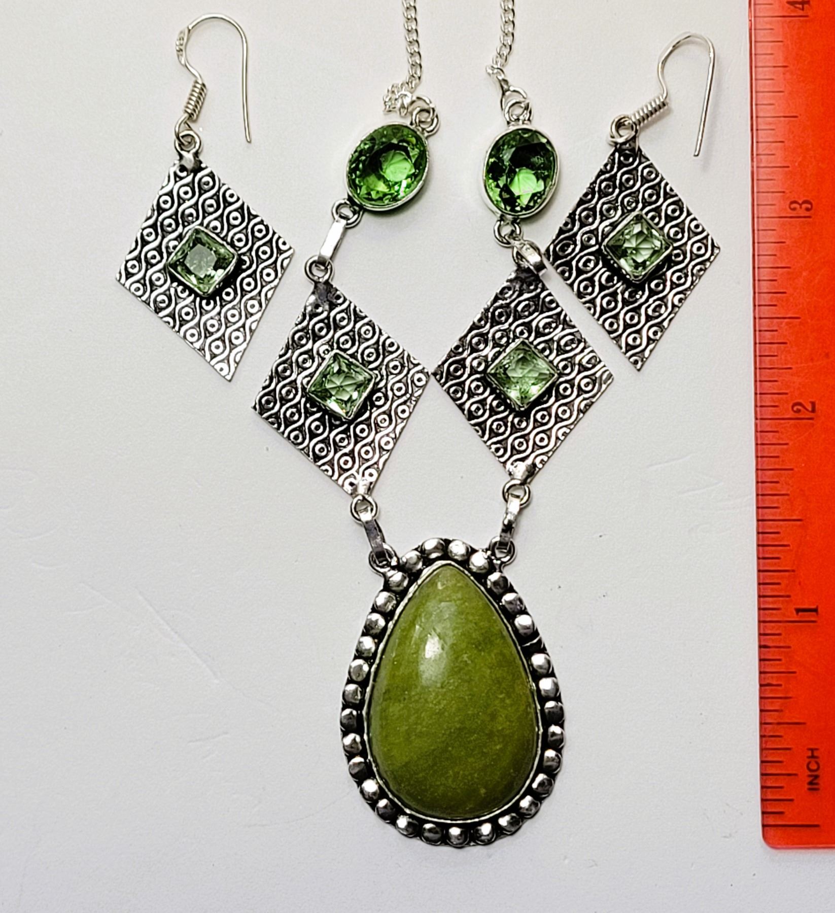 PERIDOT 19" NECKLACE WITH MATCHING DROP EARRINGS. JEWELRY