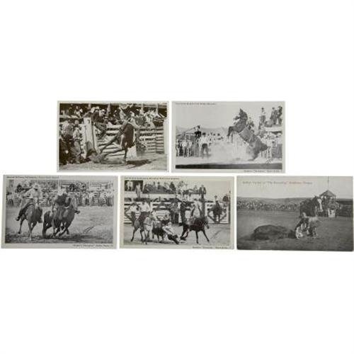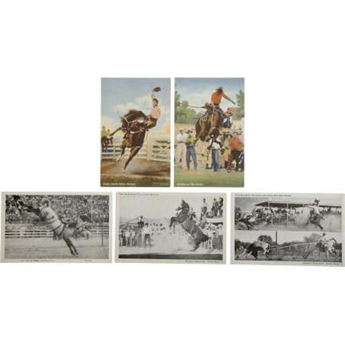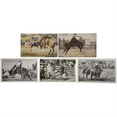 <B>Lot of 21 Vintage Post Cards Picturing Rodeo Cowboys In Action,</B></I> from the early 20th Century, some used, some divided back, some linen some tinted, and others white bordered. Most are very good or better.<BR><BR><b>Shipping:</b> Flat Material, Small (<a target="_blank" href="http://www.heritageauctions.com/common/shipping.php">view shipping information</a>)