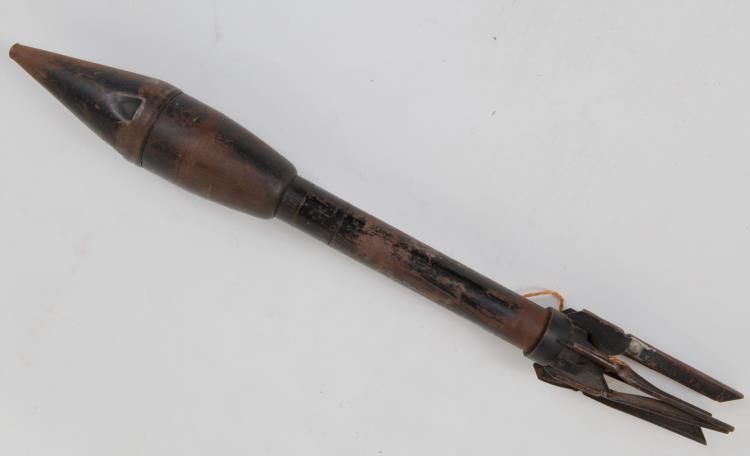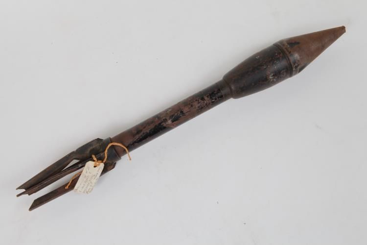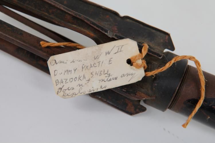 21" WWII U.S. BAZOOKA GRENADE-INERT-PRACTICE SHELL TOP UN-SCREWS--FULL GRENADE WITH FINS--ID TAGGED BY VET-INTERESTING COLLECTION DISPLAY ORIGINAL PIECE