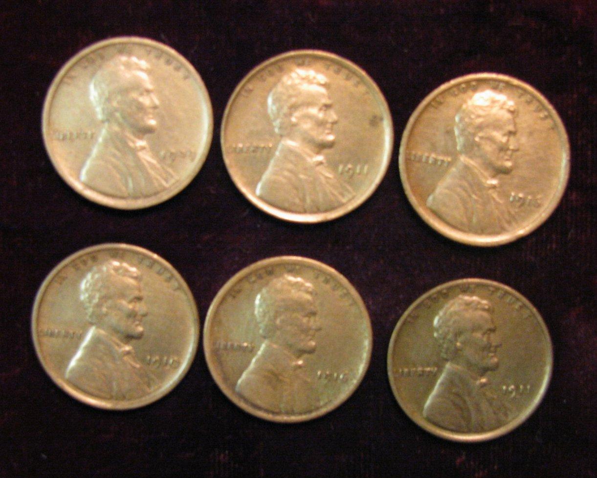 210. 1909P F, 10P EF, 11P EF, 11D EF, & (2) 16P VF Cents.