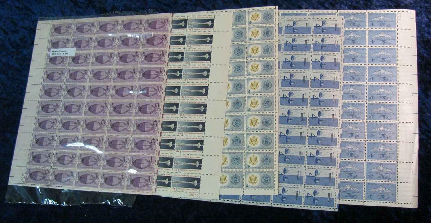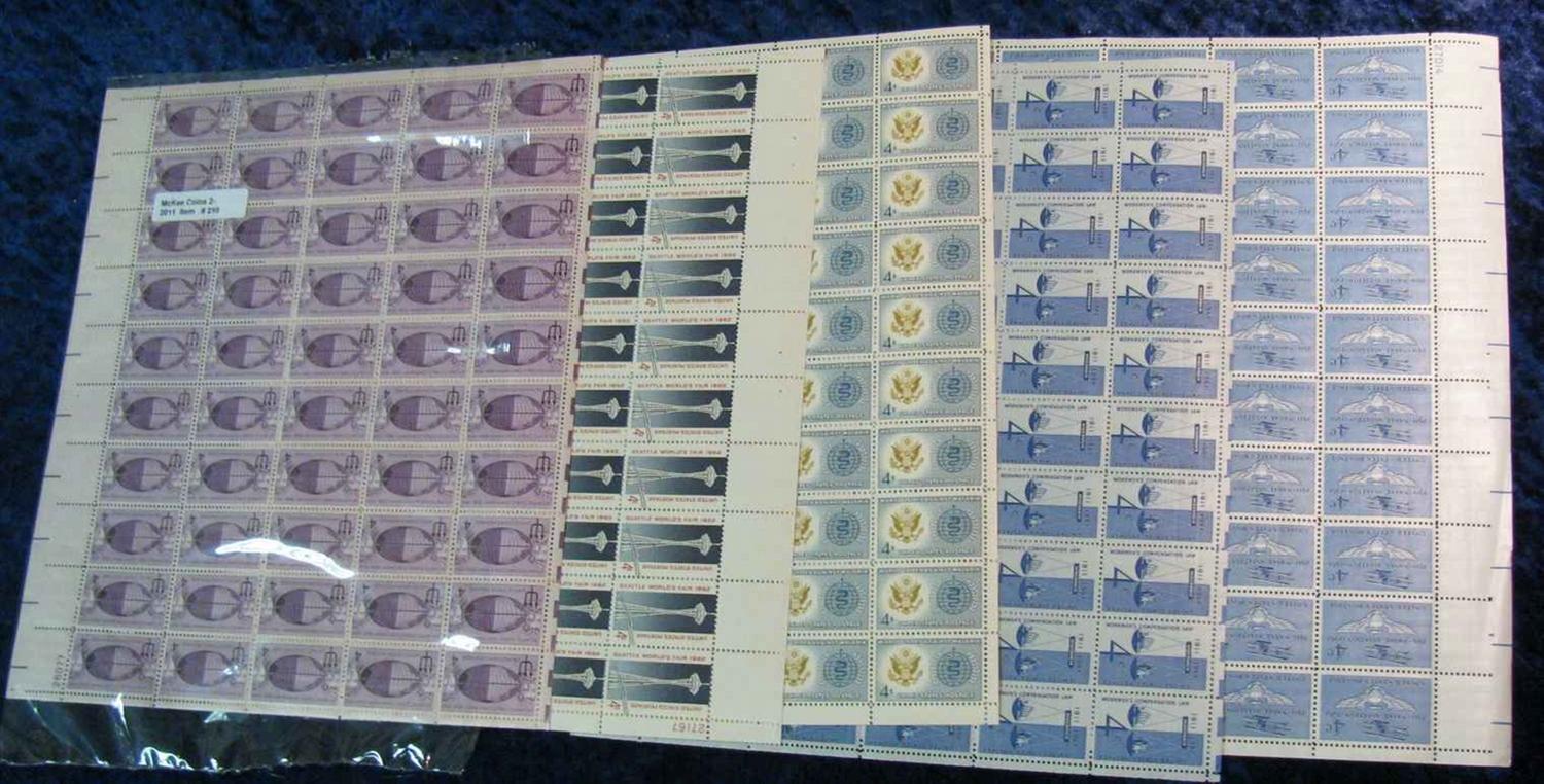 210. (5) Original Mint Sheets of U.S. 4c Stamps. All different. ($10 face value)