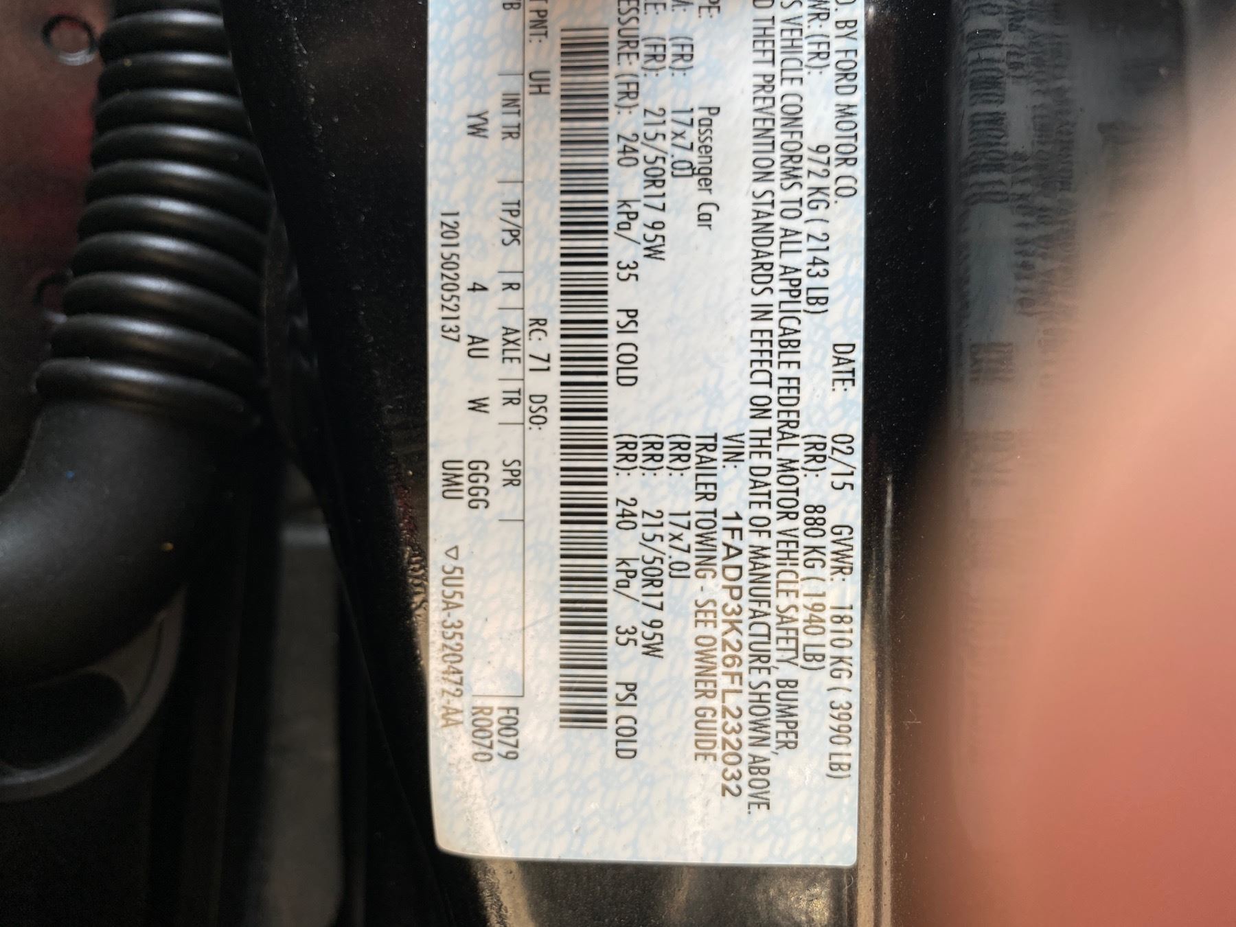 VIN:1FADP3K26FL232032