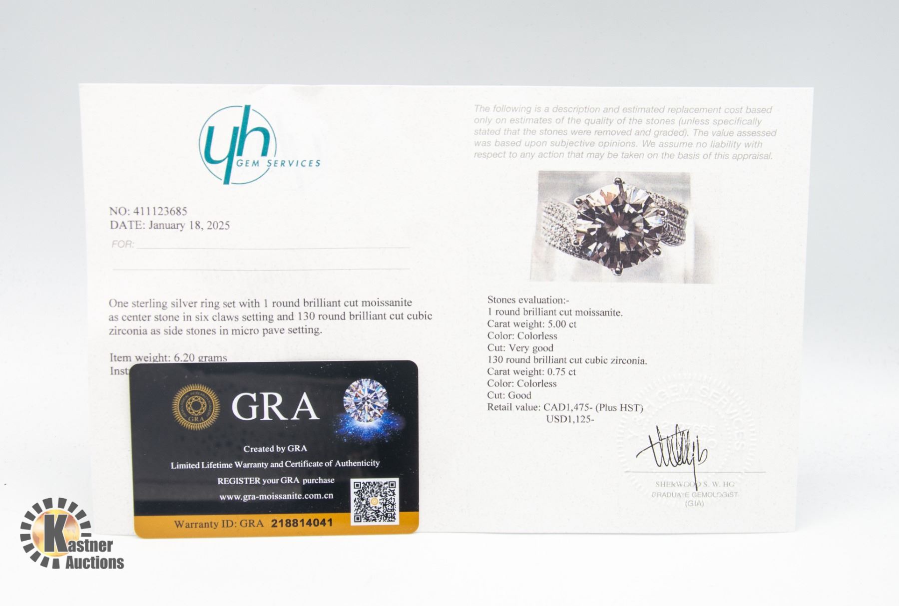 MOISSANITE STONE VVS D COLOR SET WITH 130 ROUND BRILLIANT CUT CZ?S SET IN 925 SILVER RING SIZE 7 RETAIL VALUE $1,475.00 **ALL ITEMS MUST BE REMOVED BY 5PM SATURDAY, FEBRUARY 8TH 2025. ALL REMAINING ITEMS WILL BE SUBJECT TO A $6.00 PER DAY STORAGE CHARGE. ANY ITEMS REMAINING AFTER MONDAY, MARCH 3RD 2025 WILL BE CONSIDERED FORFEITED. NO REFUNDS WILL BE ISSUED FOR FORFEITED ITEMS. TO SCHEDULE A PICK UP APPOINTMENT CLICK HERE