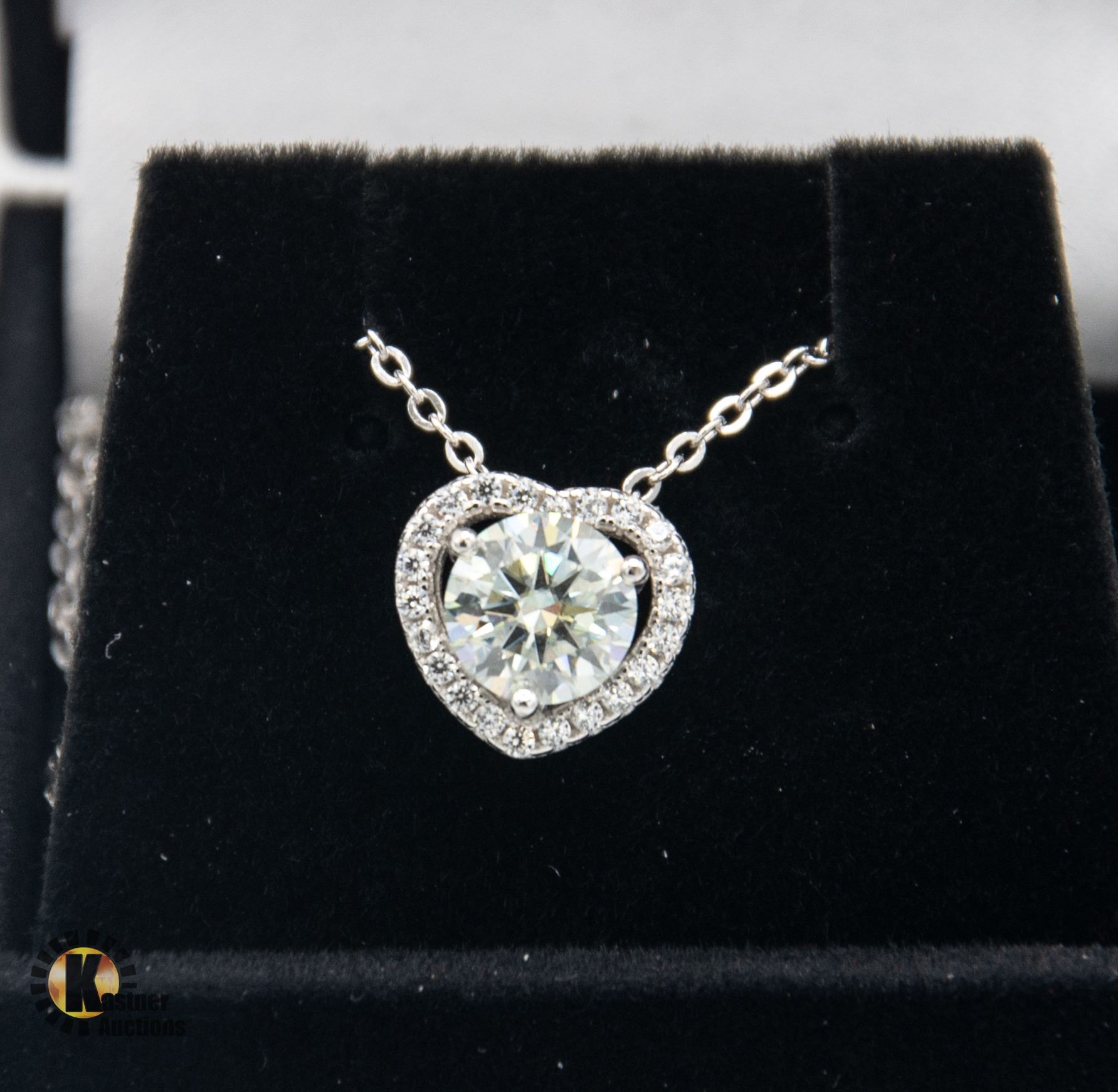 MOISSANITE STONE VVS D COLOR SET IN HEART SHAPED HALO WITH 22 ROUND BRILLIANT CUT CUBIC ZIRCONIA SET IN 925 SILVER PENDANT RETAIL VALUE $800.00 **ALL ITEMS MUST BE REMOVED BY 5PM SATURDAY, FEBRUARY 8TH 2025. ALL REMAINING ITEMS WILL BE SUBJECT TO A $6.00 PER DAY STORAGE CHARGE. ANY ITEMS REMAINING AFTER MONDAY, MARCH 3RD 2025 WILL BE CONSIDERED FORFEITED. NO REFUNDS WILL BE ISSUED FOR FORFEITED ITEMS. TO SCHEDULE A PICK UP APPOINTMENT CLICK HERE