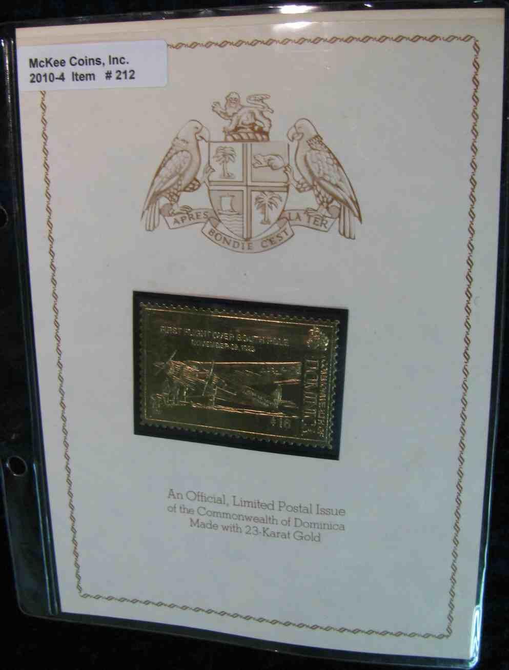 212. Common Wealth of Dominca 23K Gold Stamp with literature.