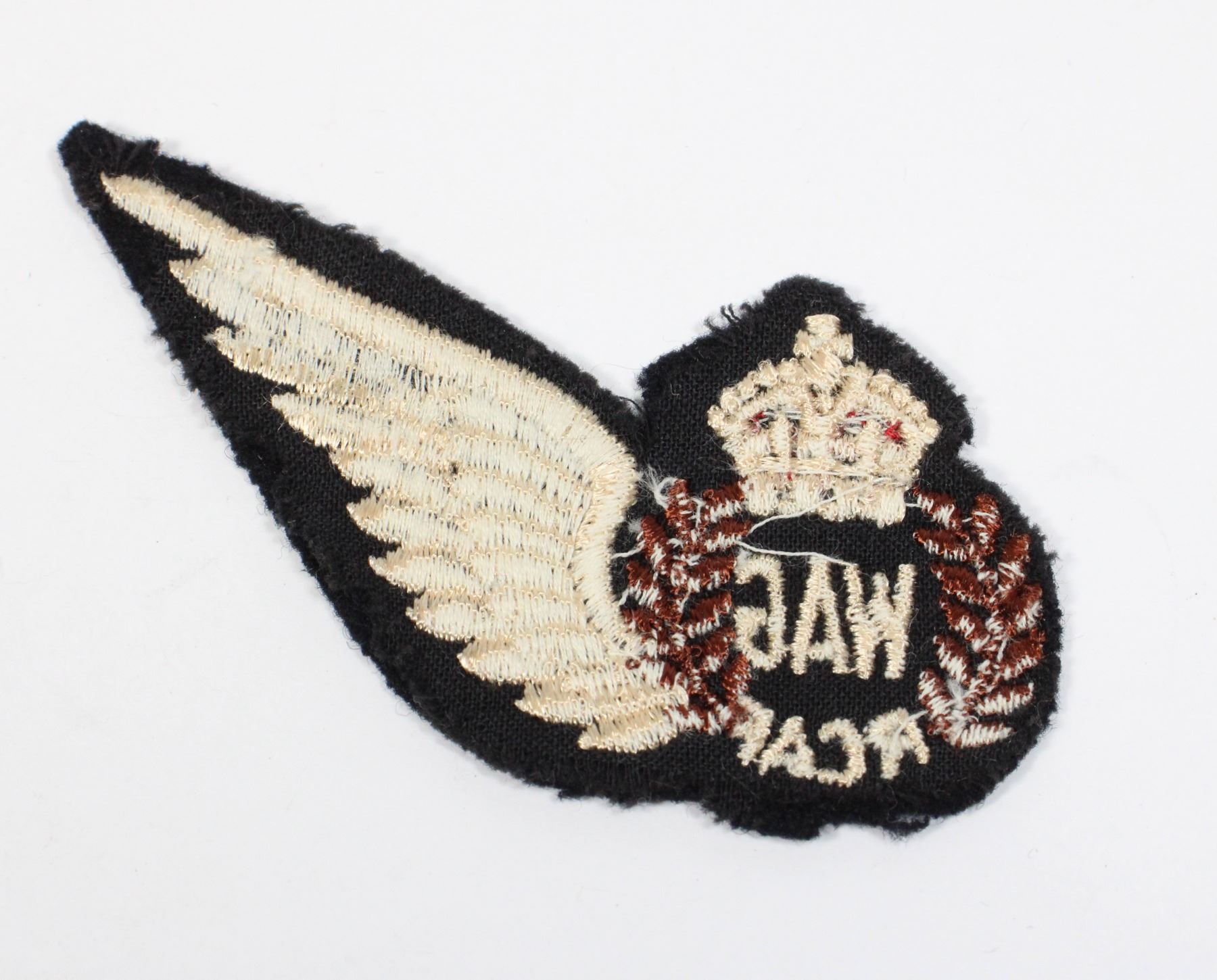 FOR WORLD WAR TWO ROYAL CANADIAN AIR FORCE TUNIC, WIRELESS AIR GUNNER INSIGNIA KING GEORGE VI CROWN CLOTH INSIGNIA - ALLIED FORCES