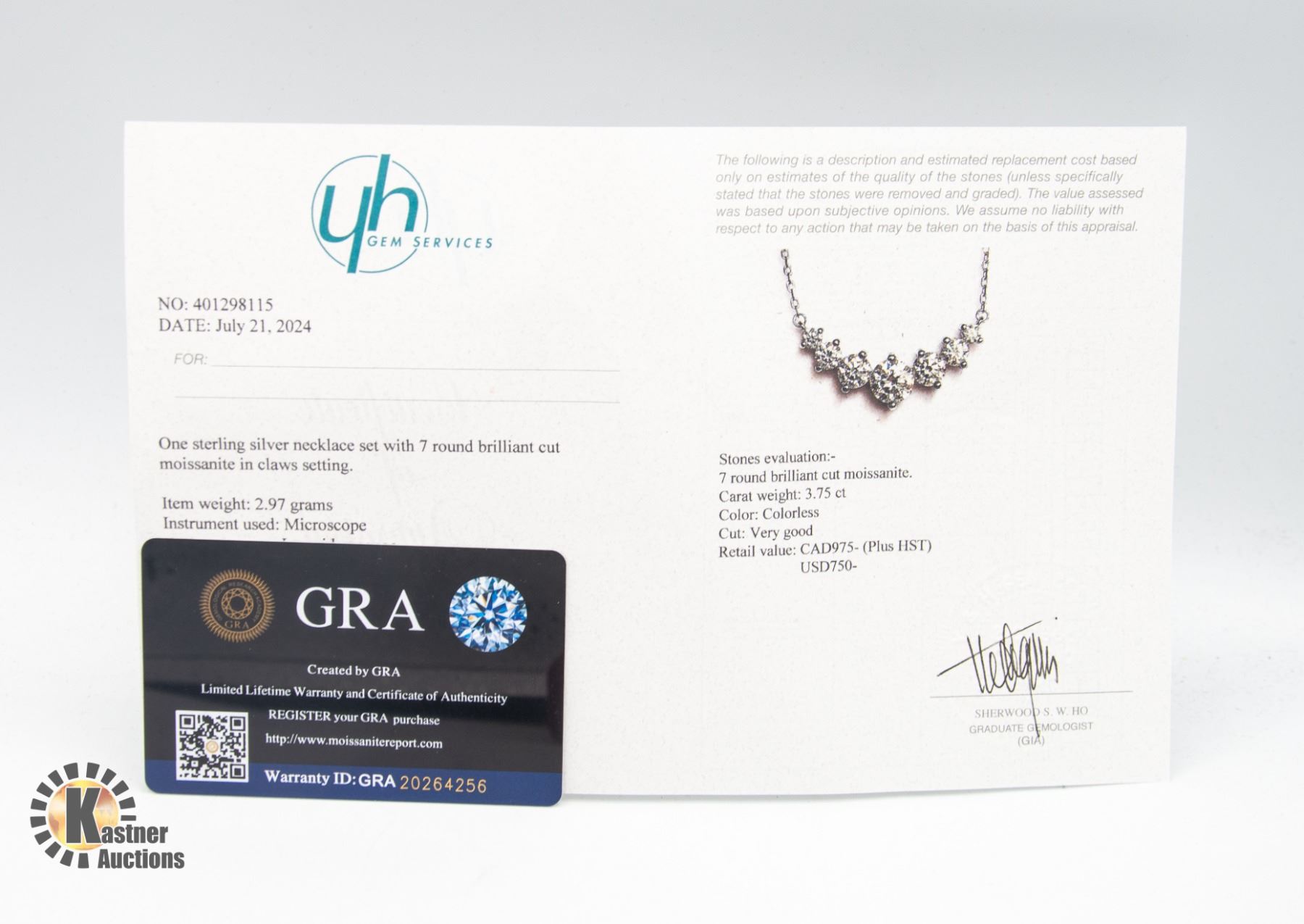 MOISSANITE STONES VVS D COLOR WITH LARGER CENTER WITH 3 GRADUATING IN SIZE ON EACH SIDE SET IN 925 SILVER PENDANT RETAIL VALUE $975.00 **ALL ITEMS MUST BE REMOVED BY 5PM SATURDAY, FEBRUARY 8TH 2025. ALL REMAINING ITEMS WILL BE SUBJECT TO A $6.00 PER DAY STORAGE CHARGE. ANY ITEMS REMAINING AFTER MONDAY, MARCH 3RD 2025 WILL BE CONSIDERED FORFEITED. NO REFUNDS WILL BE ISSUED FOR FORFEITED ITEMS. TO SCHEDULE A PICK UP APPOINTMENT CLICK HERE
