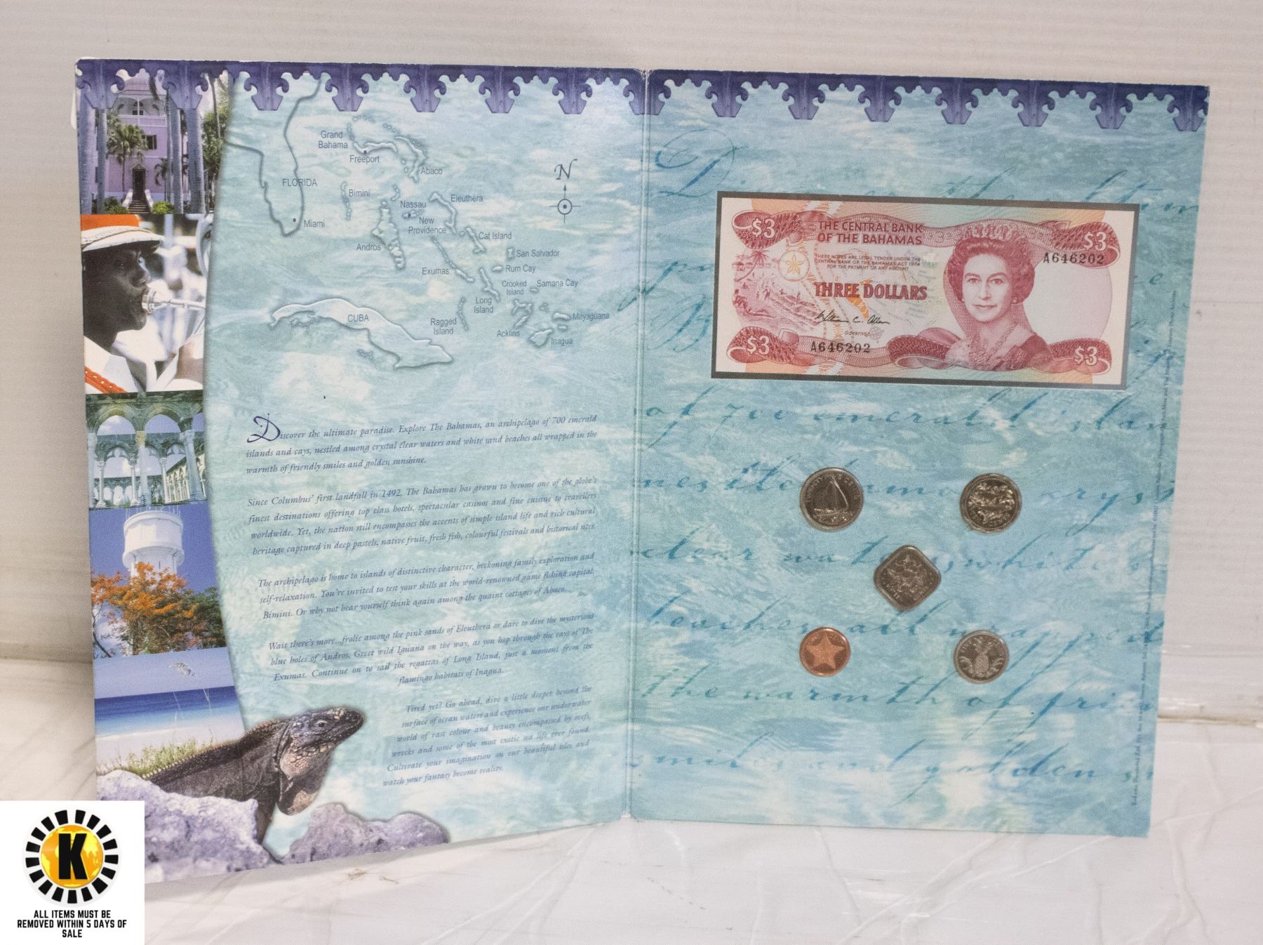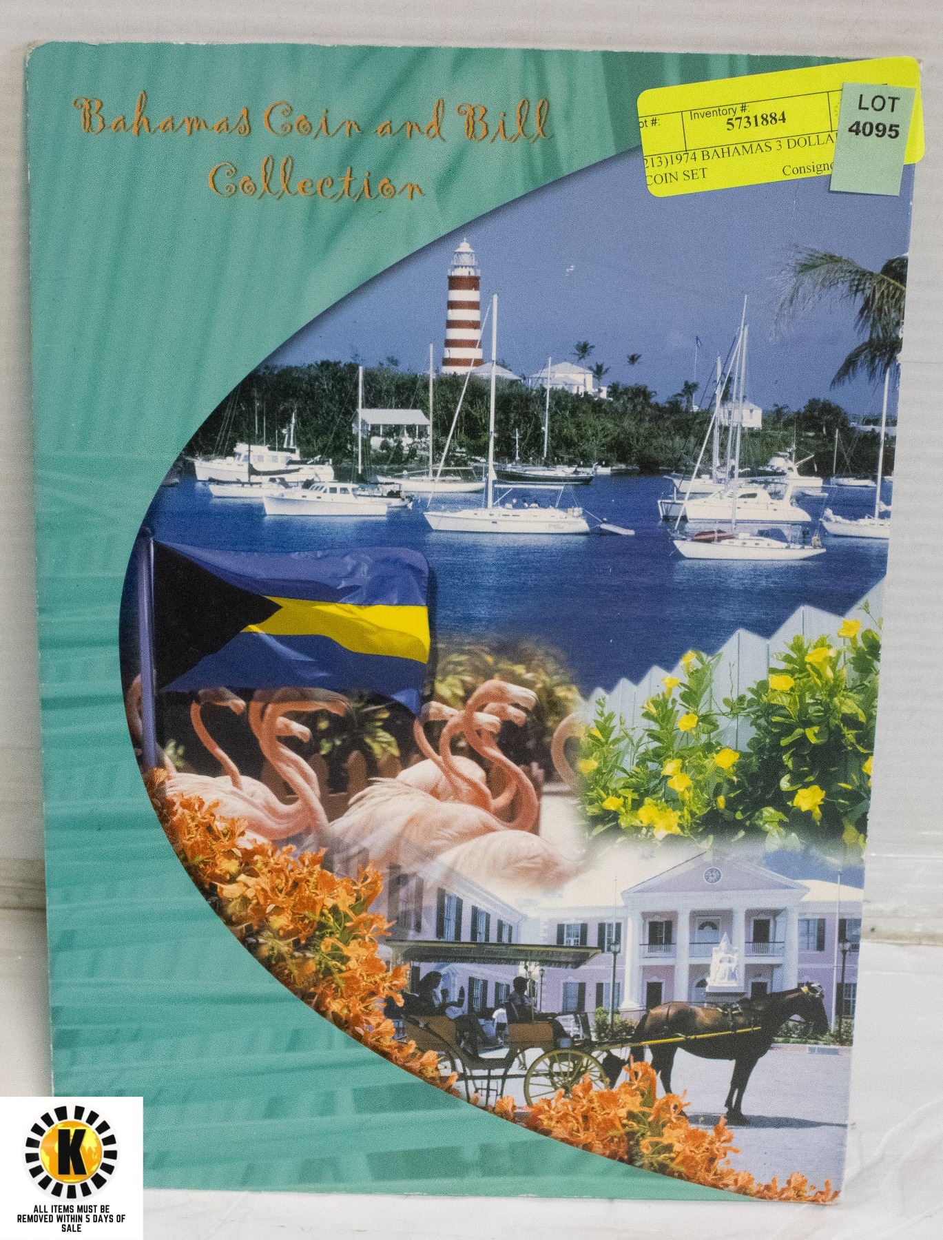 213)1974 BAHAMAS 3 DOLLAR BILL & COIN SET