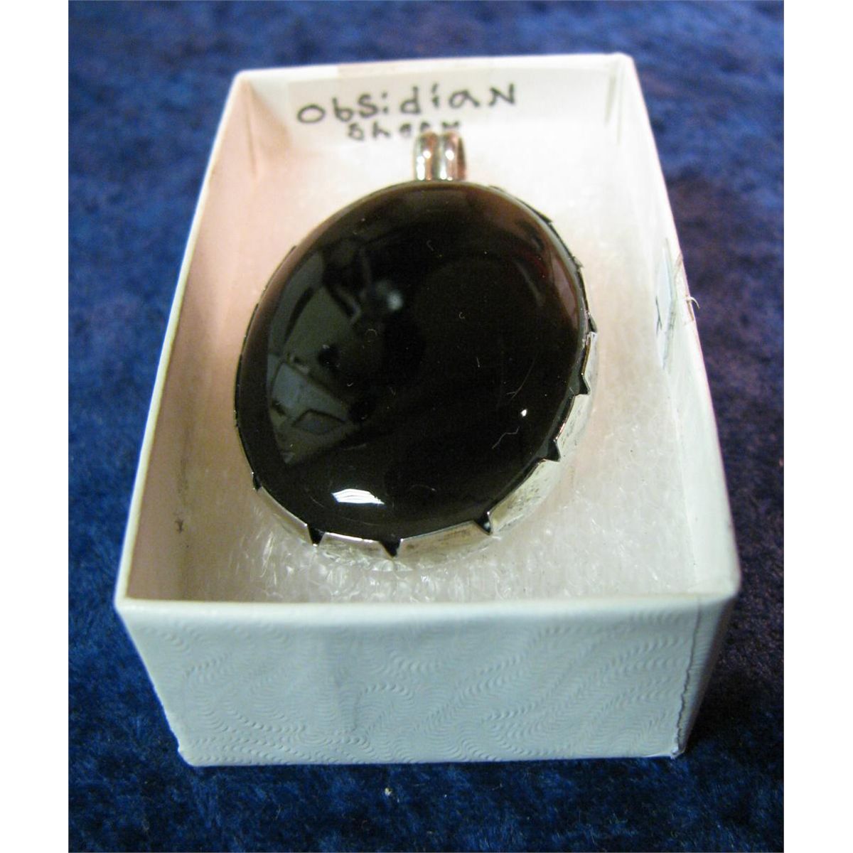 213. Obsidian (Oregon) in 30mm x 40mm Sterling Silver Mount. New in box. Reverse signed by maker.
