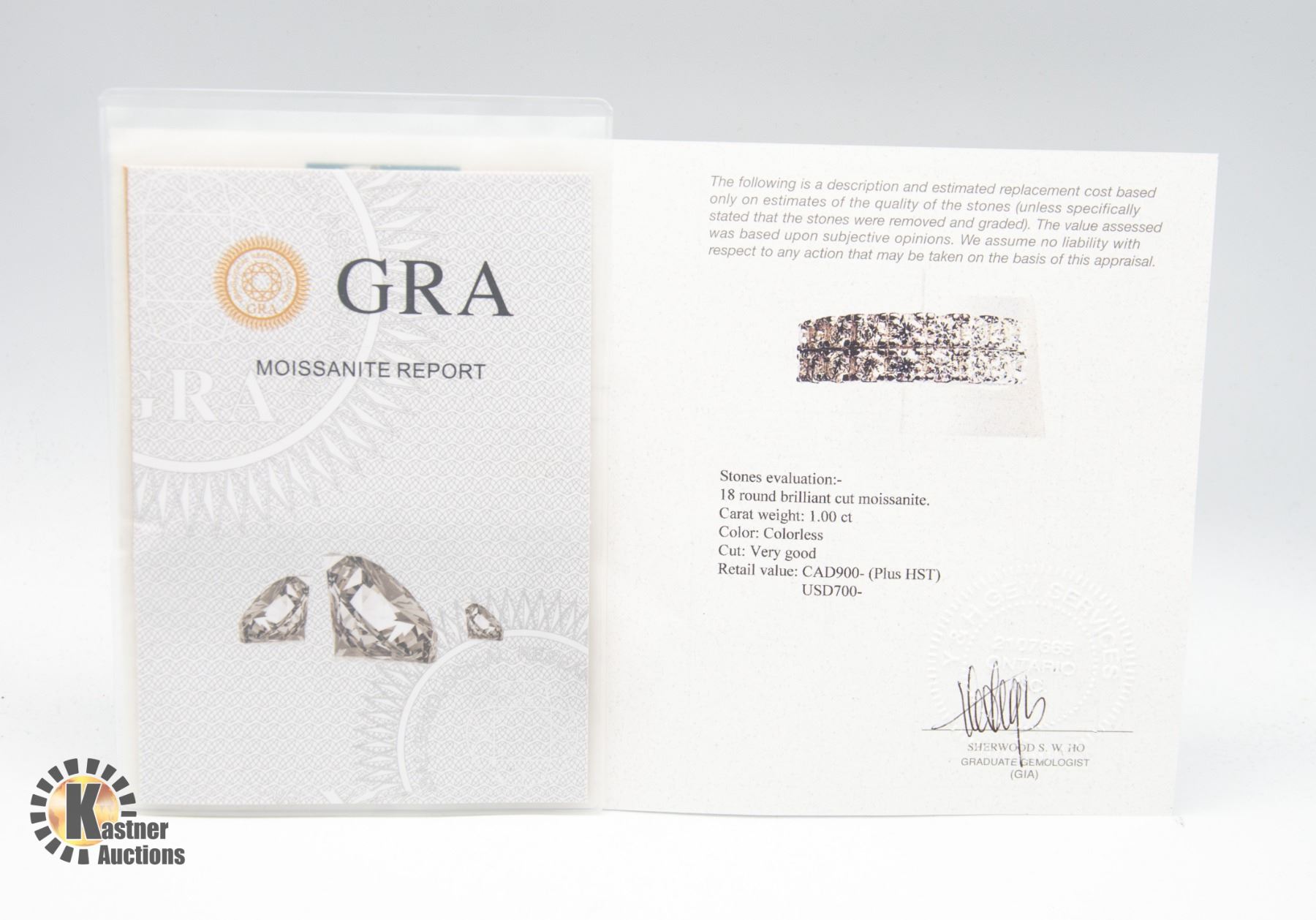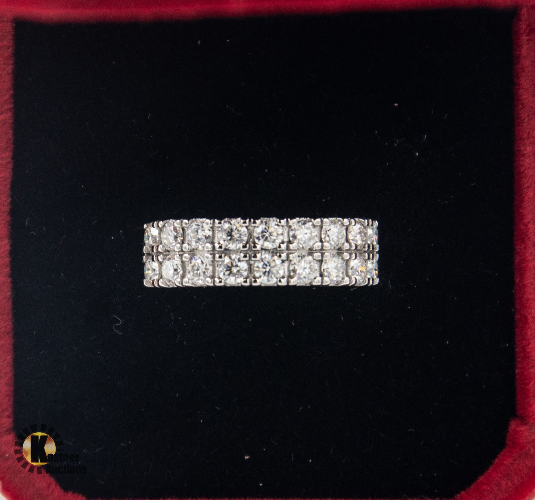 MOISSANITE STONE VVS D COLOR SET WITH THE 18 MOISSANITE STONES SET INTO 2 ROWS SET IN 925 SILVER RING SIZE 6.25 RETAIL VALUE $900.00 **ALL ITEMS MUST BE REMOVED BY 5PM SATURDAY, FEBRUARY 8TH 2025. ALL REMAINING ITEMS WILL BE SUBJECT TO A $6.00 PER DAY STORAGE CHARGE. ANY ITEMS REMAINING AFTER MONDAY, MARCH 3RD 2025 WILL BE CONSIDERED FORFEITED. NO REFUNDS WILL BE ISSUED FOR FORFEITED ITEMS. TO SCHEDULE A PICK UP APPOINTMENT CLICK HERE
