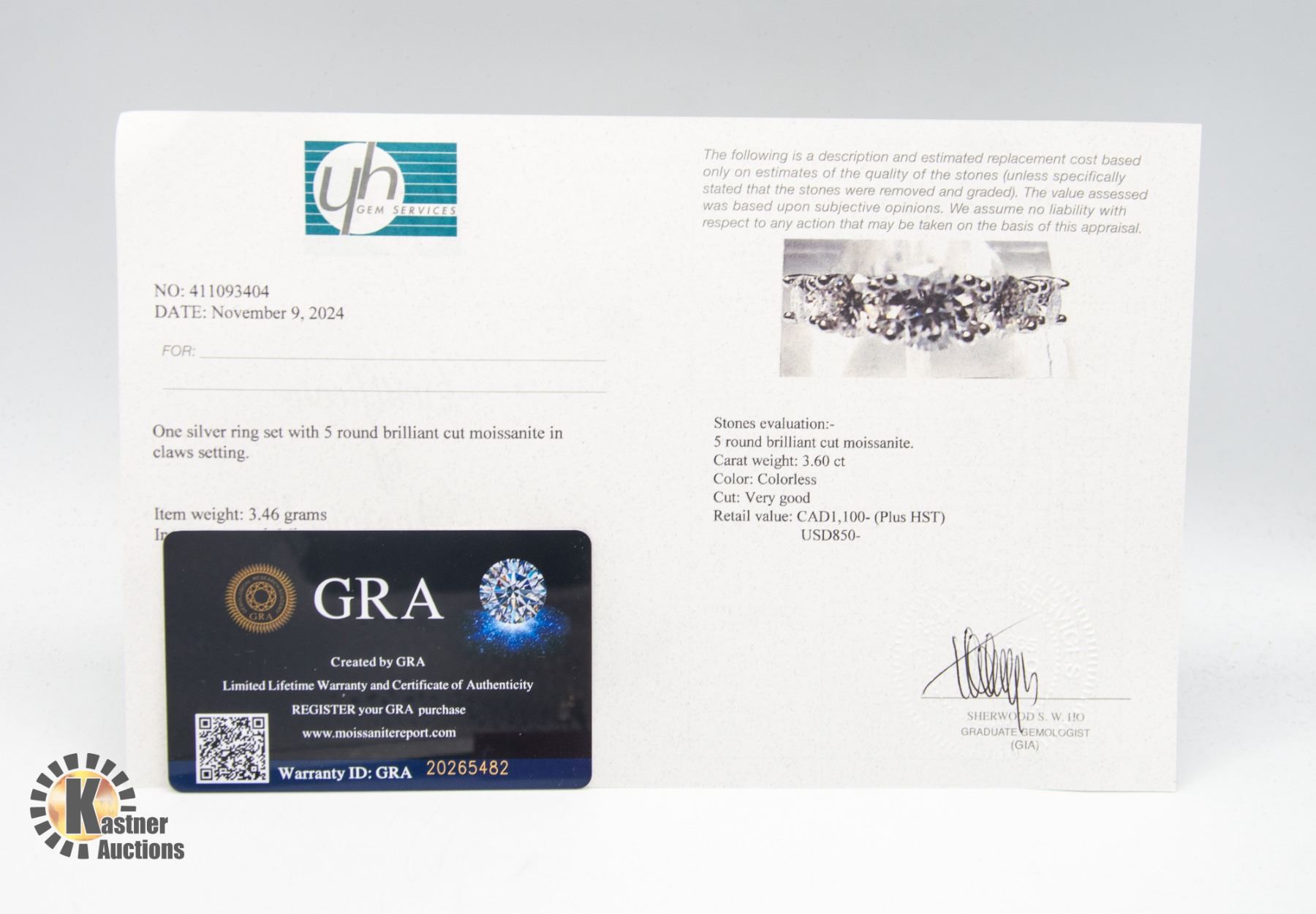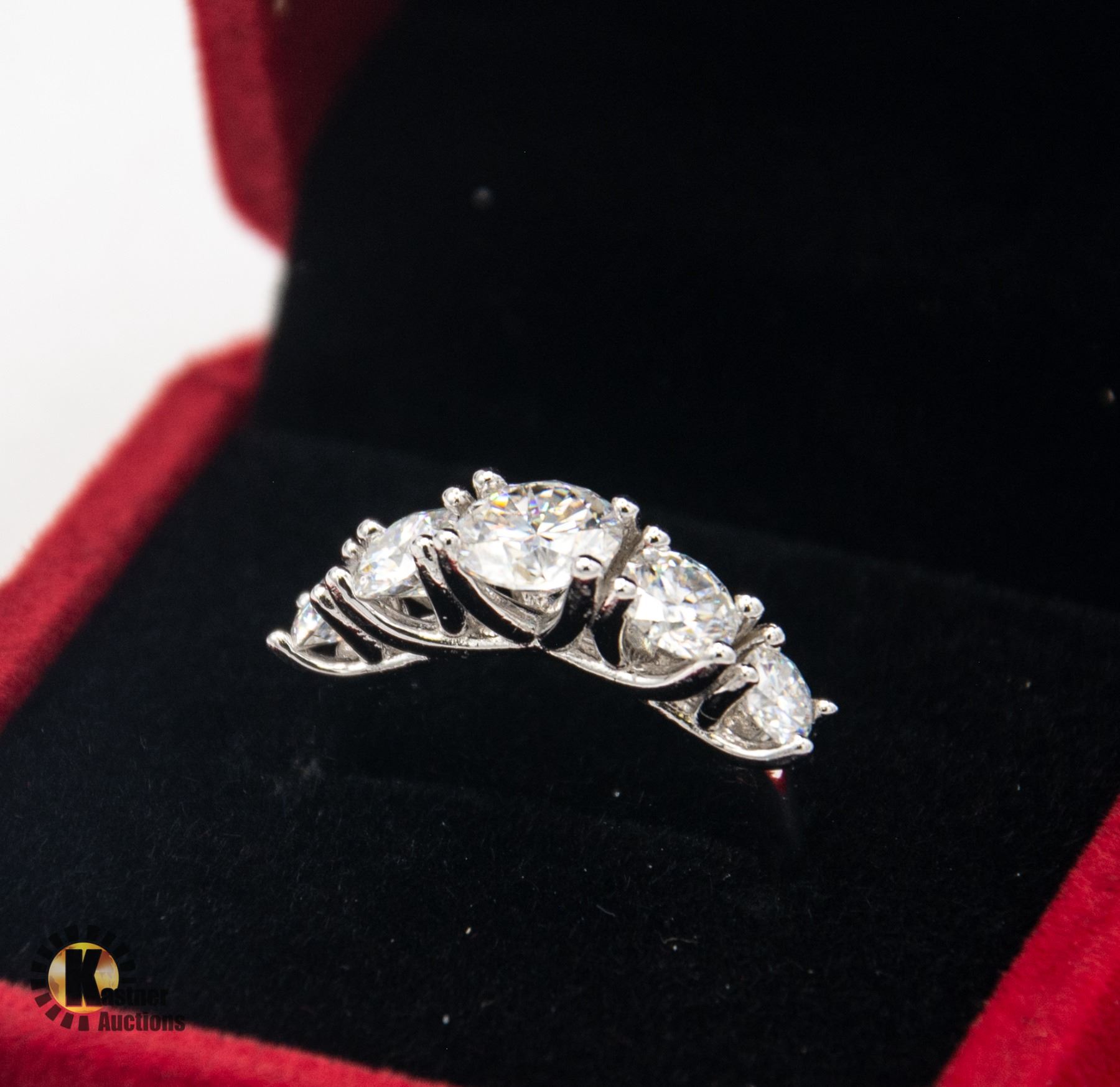 MOISSANITE STONES VVS D COLOR SET WITH LARGER STONE IN CENTER GRADUATING DOWN IN SIZE ON EACH SIDE OF CENTER SET IN 925 SILVER RING SIZE 6.25 $1,100.00 **ALL ITEMS MUST BE REMOVED BY 5PM SATURDAY, FEBRUARY 8TH 2025. ALL REMAINING ITEMS WILL BE SUBJECT TO A $6.00 PER DAY STORAGE CHARGE. ANY ITEMS REMAINING AFTER MONDAY, MARCH 3RD 2025 WILL BE CONSIDERED FORFEITED. NO REFUNDS WILL BE ISSUED FOR FORFEITED ITEMS. TO SCHEDULE A PICK UP APPOINTMENT CLICK HERE
