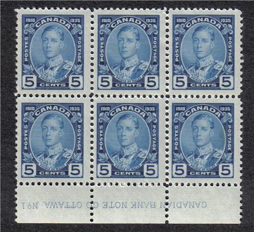 #214 VF-5NH 1LH LOWER PLATE No1 BLOCK OF 6