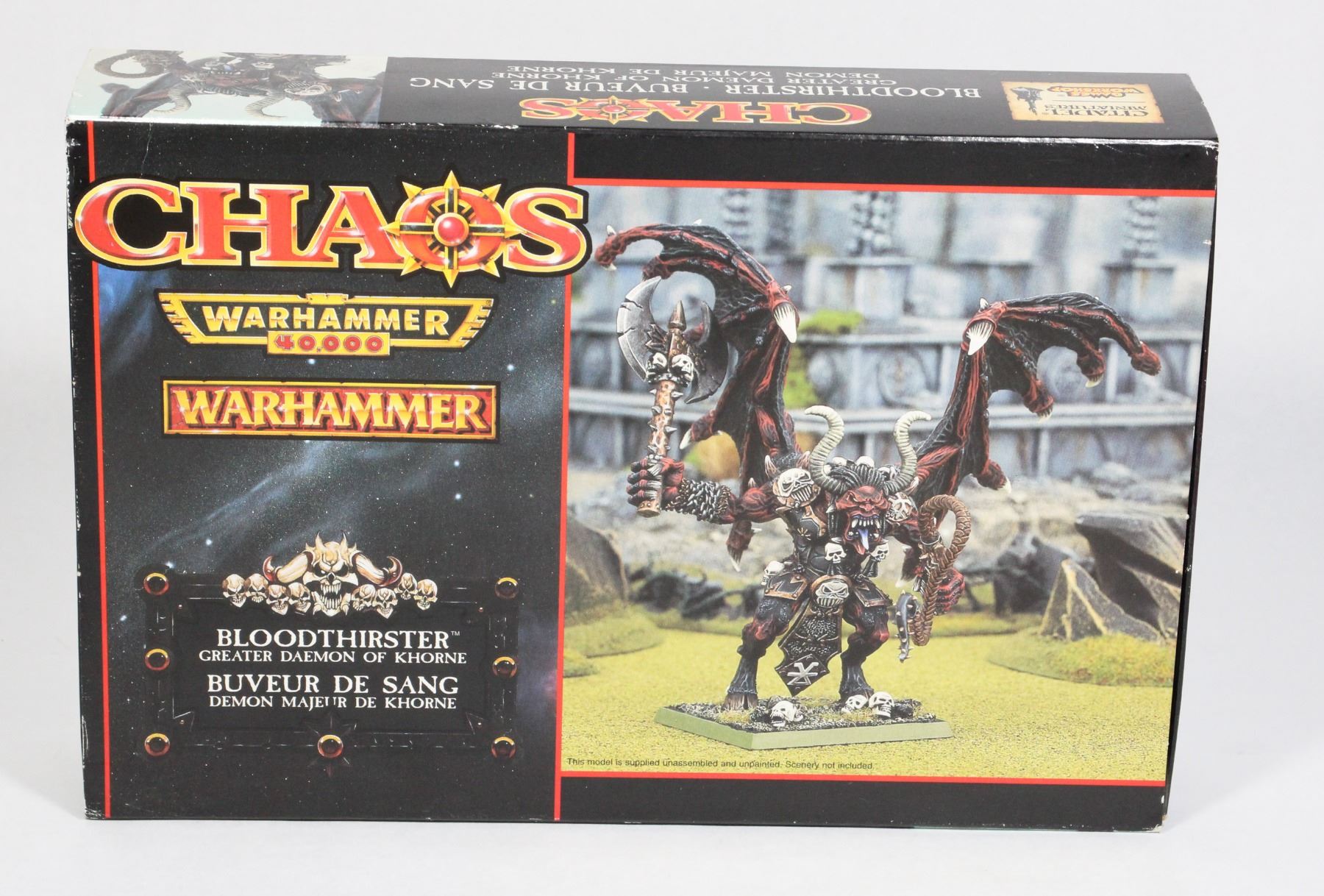 1997 MADE IN UK CHAOS WARHAMMER AND WARHAMMER 40K 40,000 BLOODTHIRSTER GREATER DAEMON OF KHORNE CITADEL MINIATURES AND GAMES WORKSHOP MODELS